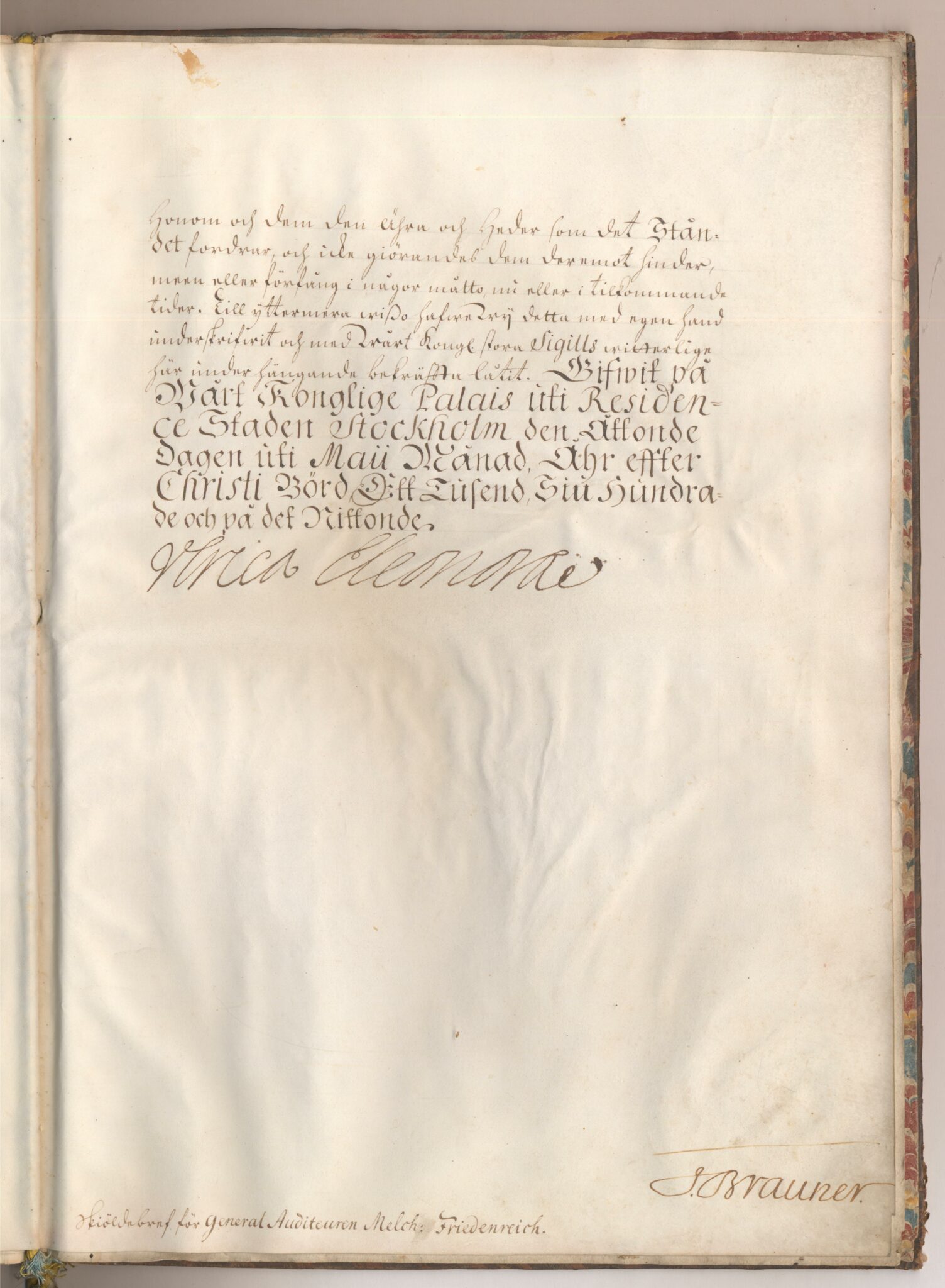 Utnämnd och utfärdat: Ulrika Eleonora d y, Palatset i Stockholm, 1719-05-08.