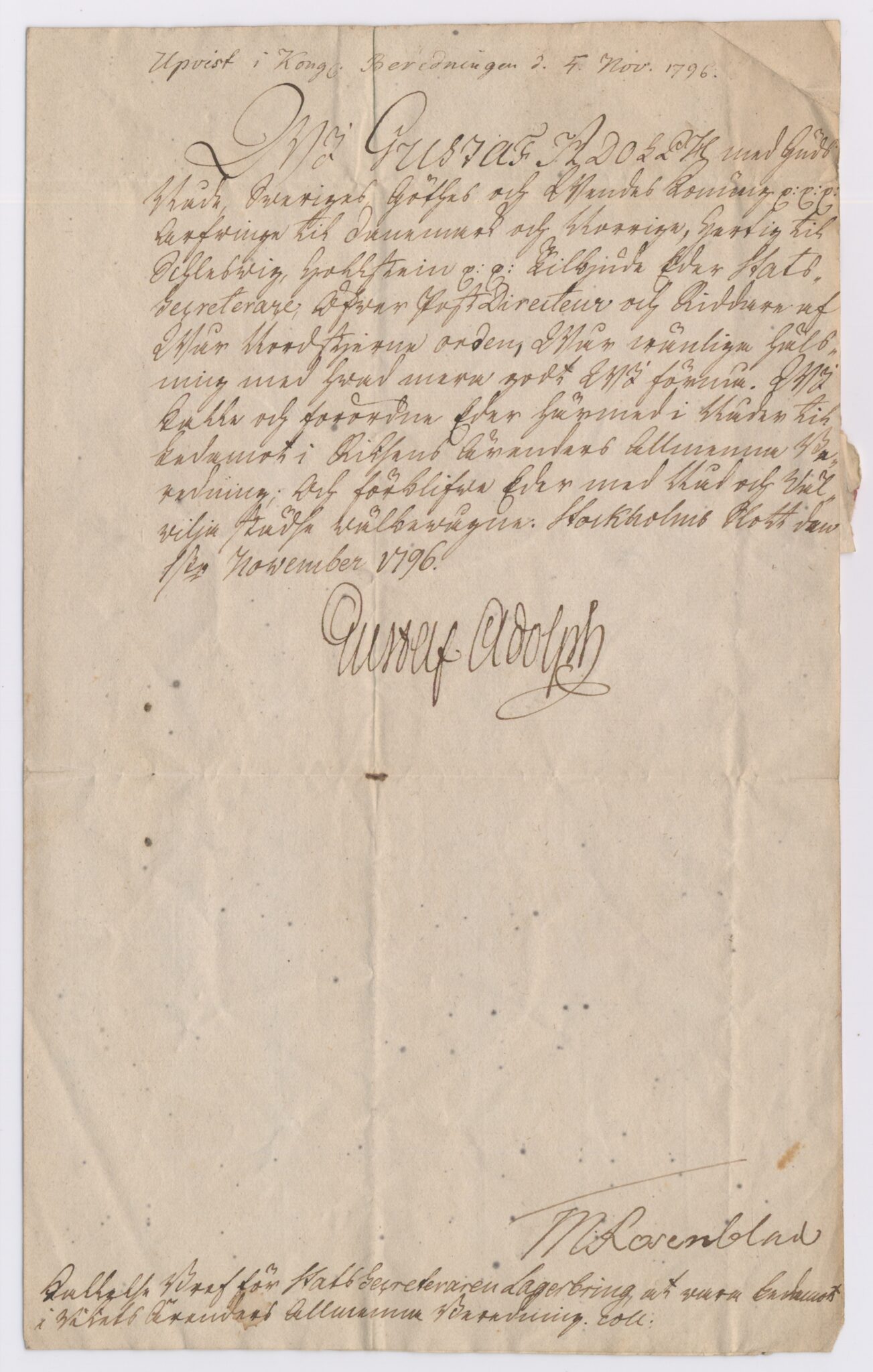 2. Gustav IV Adolf för Stadstsecretairen Lagerbring, 1796-11-04.