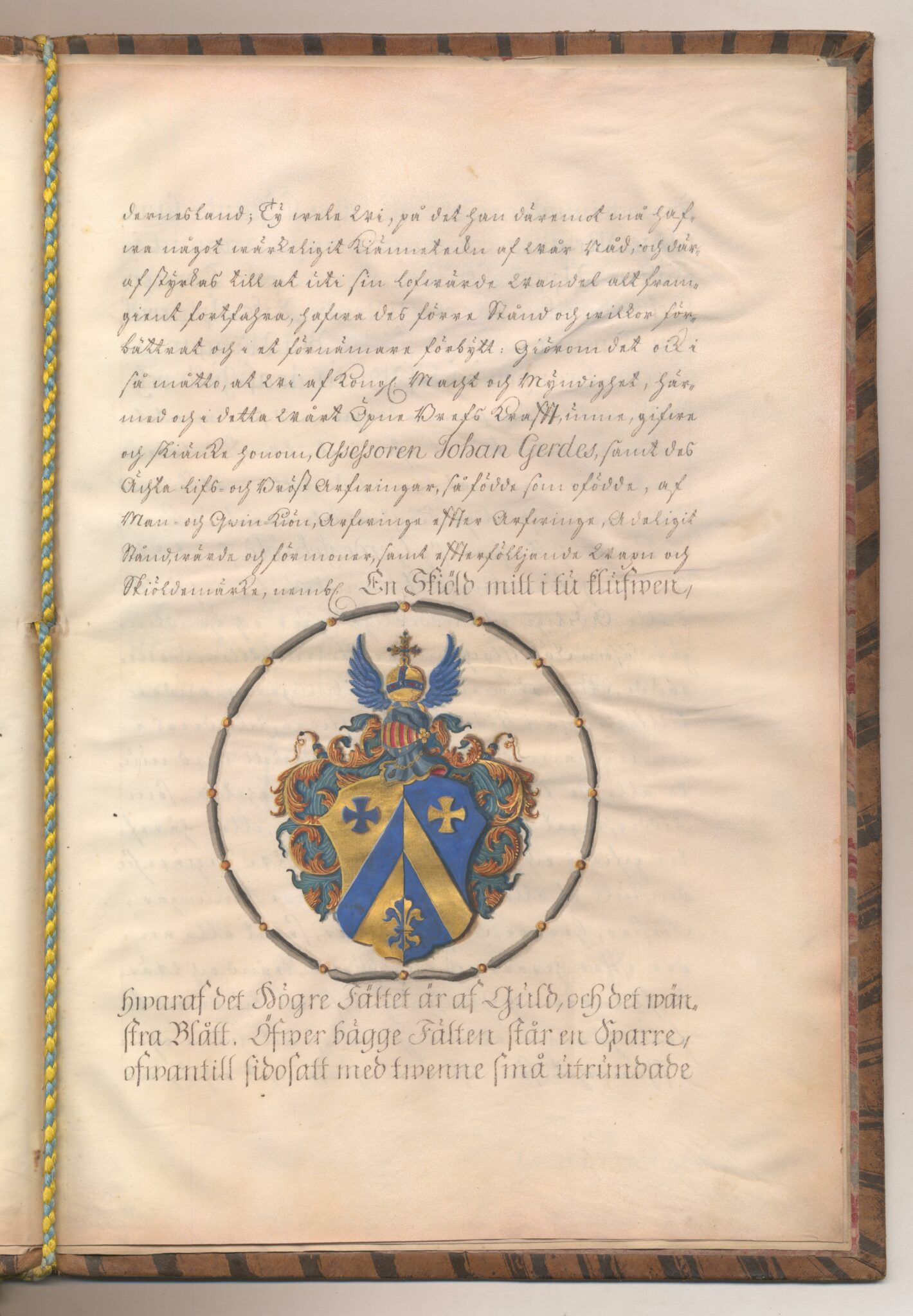 Sköldebrevet i original för utdöda adliga ätten Gerdessköld, nr 1887.