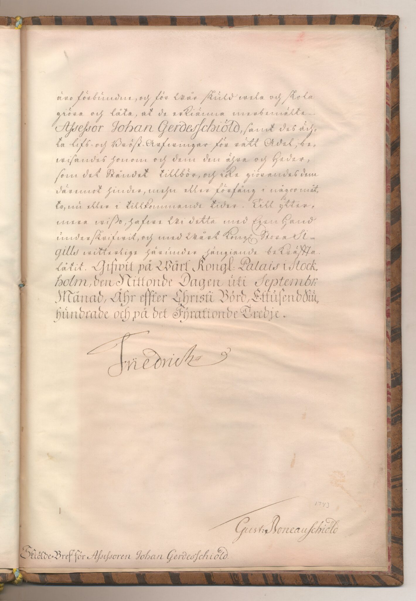 Utnämnd och utfärdat: Fredrik I, Palatset i Stockholm, 1743-09-19.