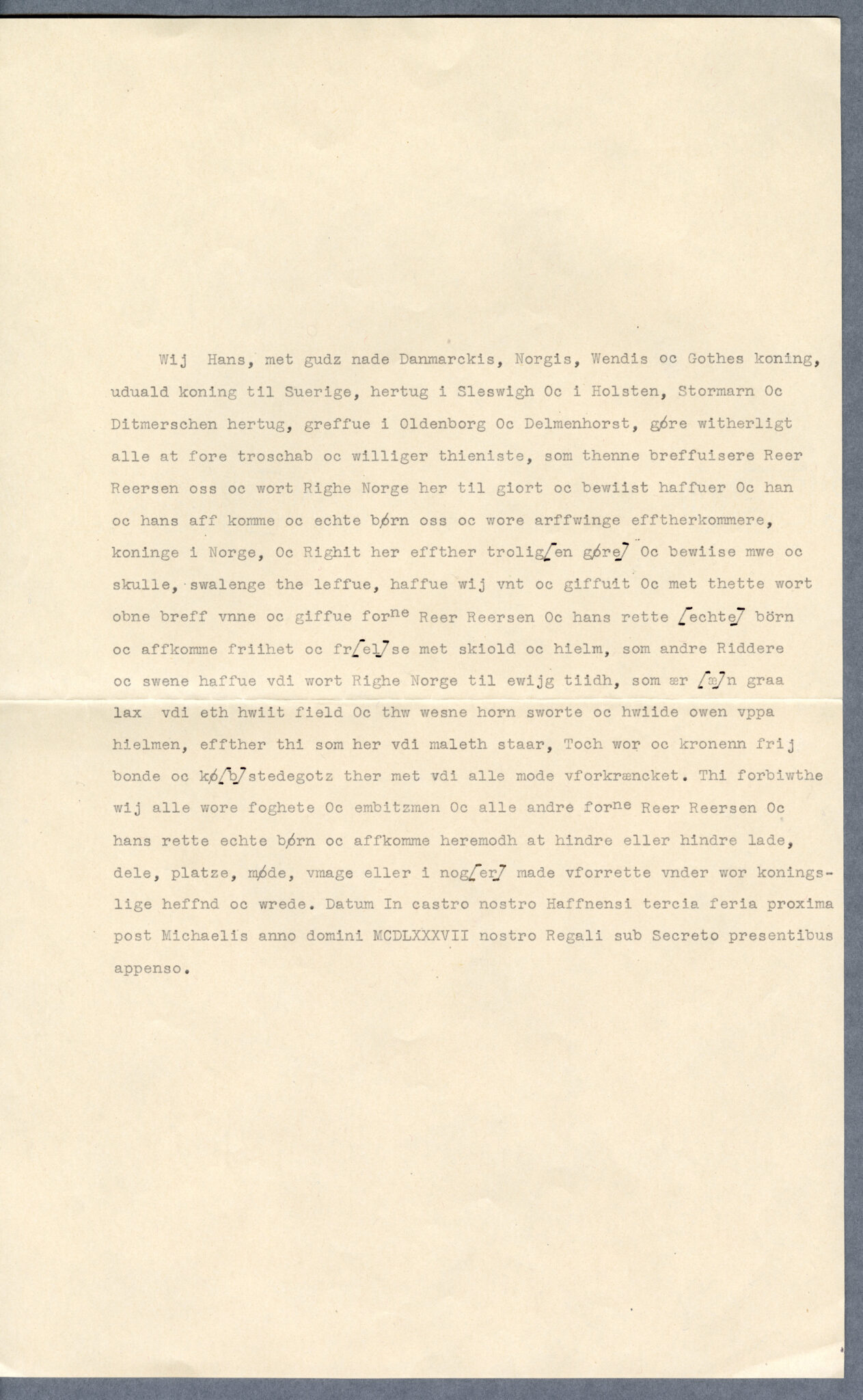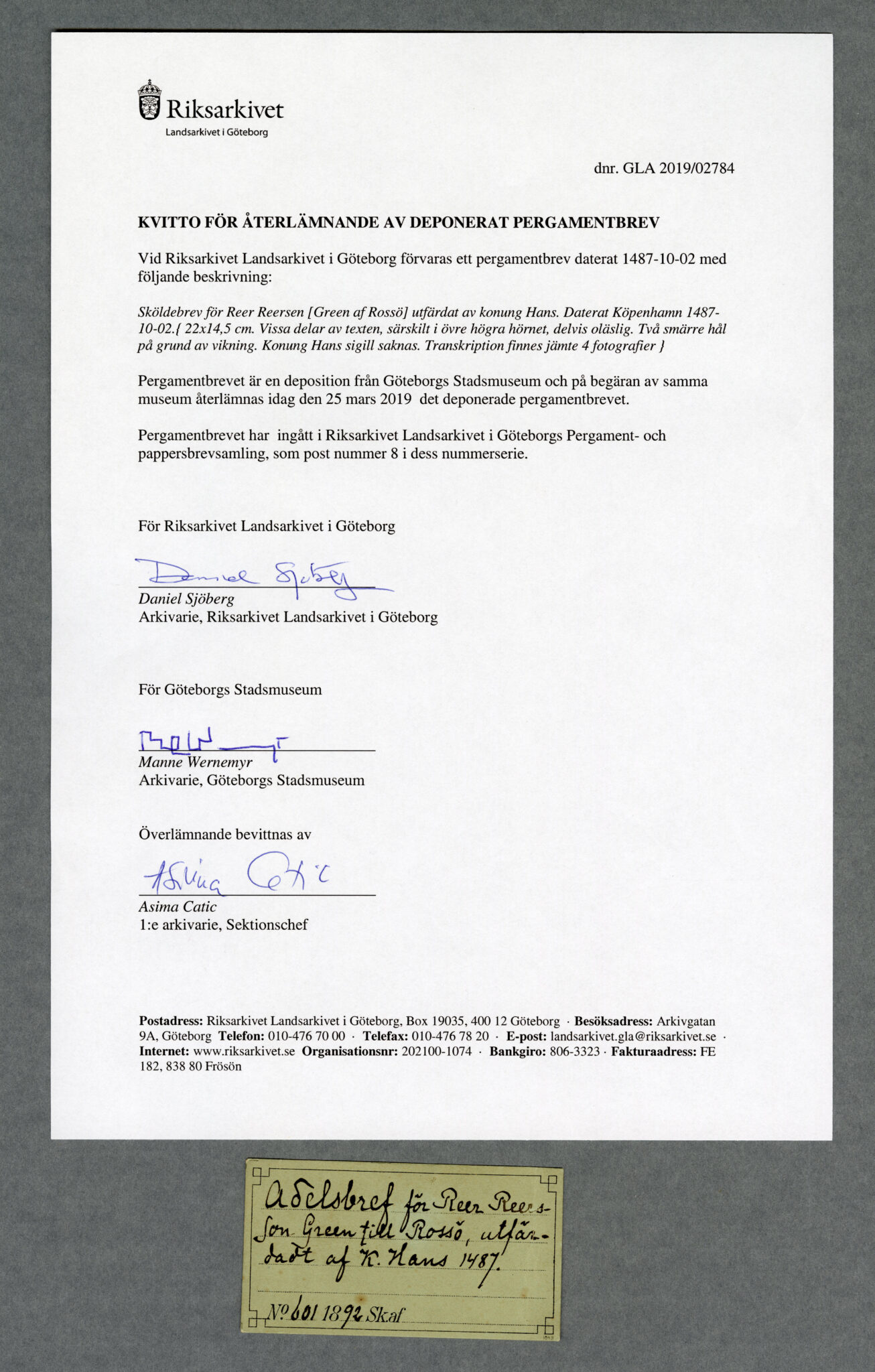 Utnämnd och utfärdat: Hans II av Danmark, Köpenhamns slott (In castro nostro Haffnensi), 1487-10-02.