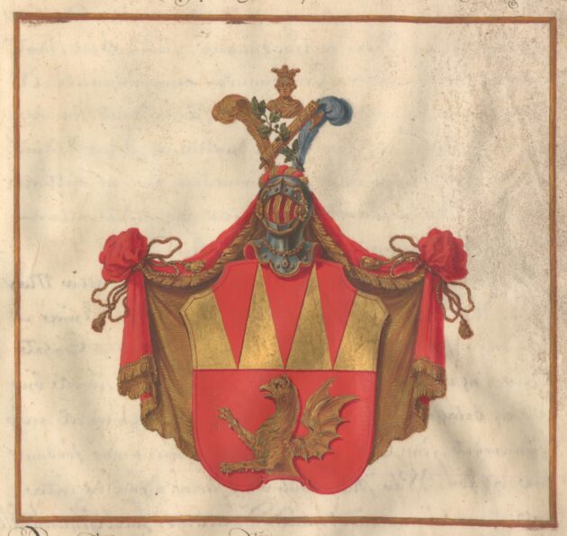 Sköldebrevet i original för utdöda adliga ätten Gripenstråle, nr 2005.