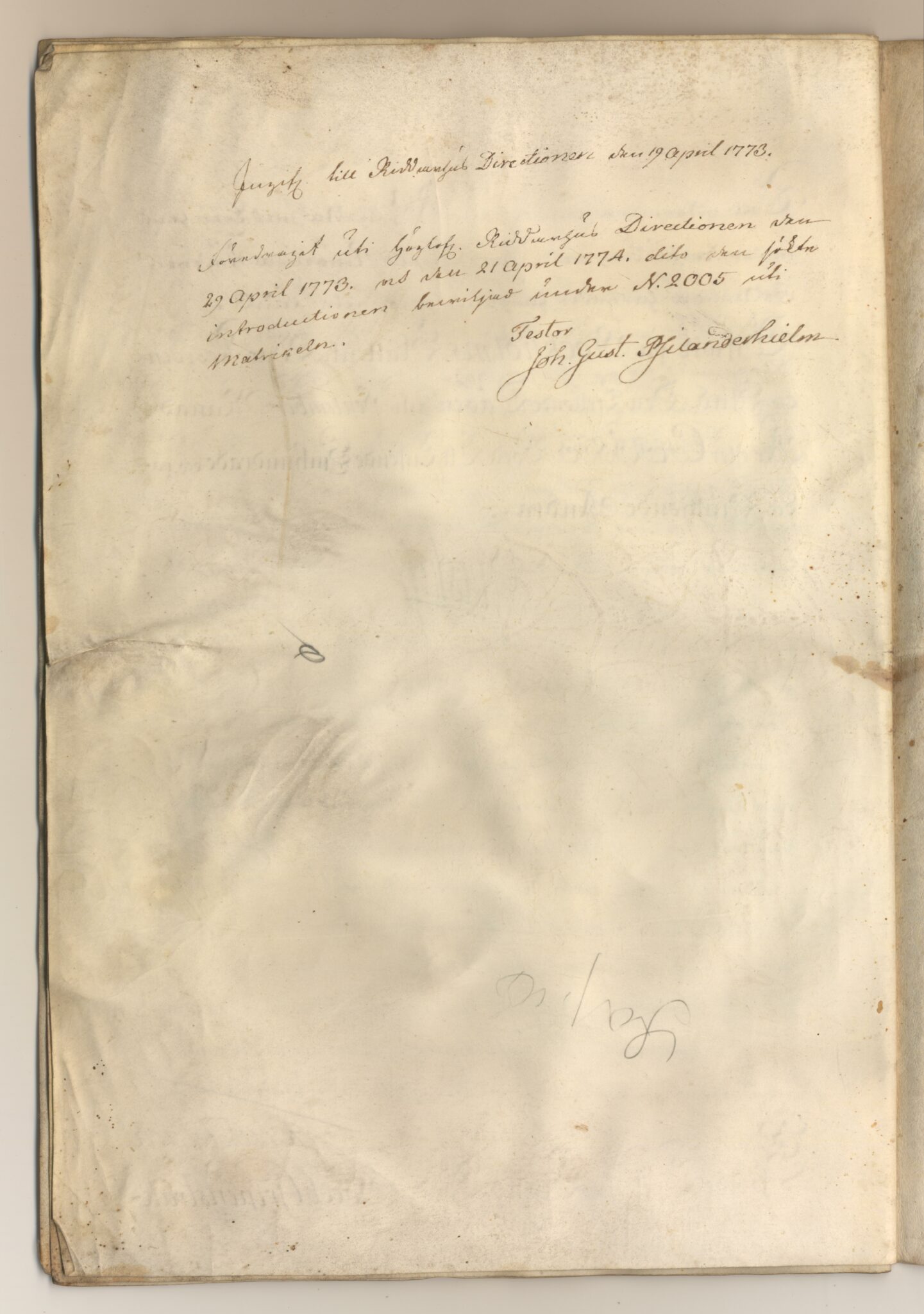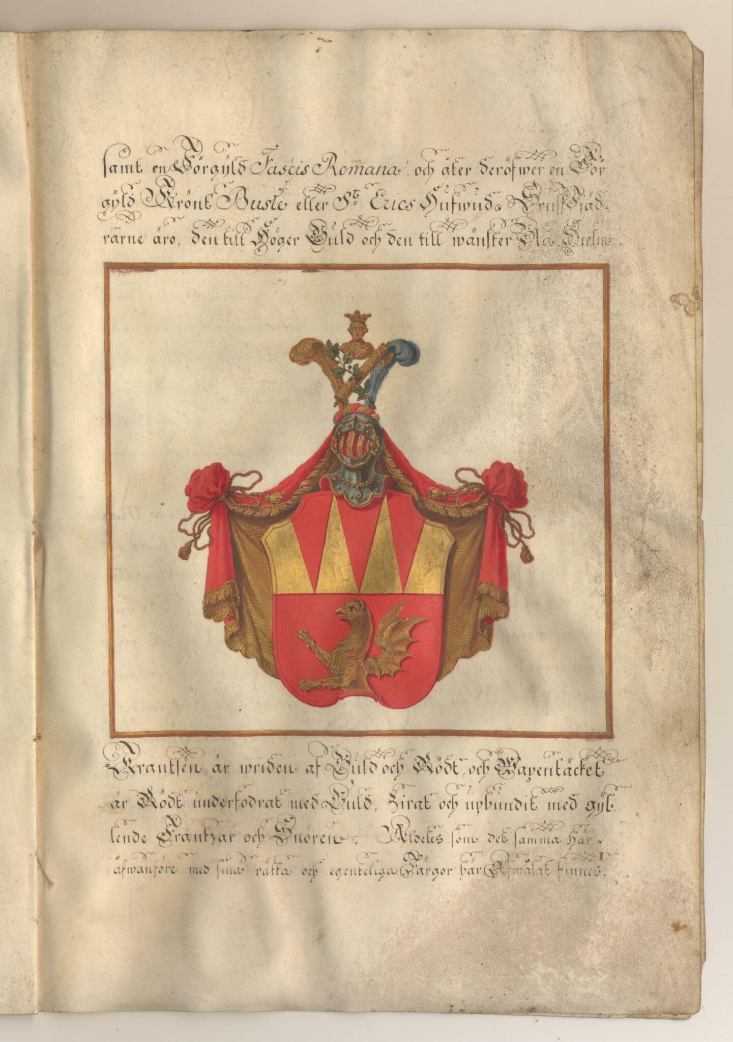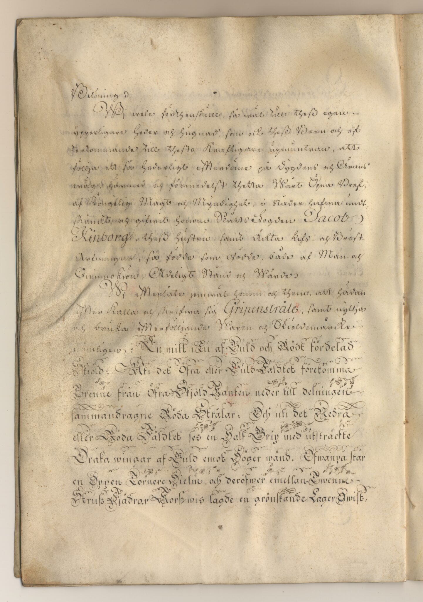 Sköldebrevet i original för utdöda adliga ätten Gripenstråle, nr 2005.