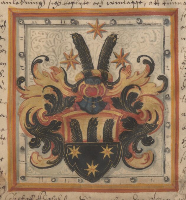 Sköldebrevet i original för utdöda adliga ätten Grubbe, nr 335.