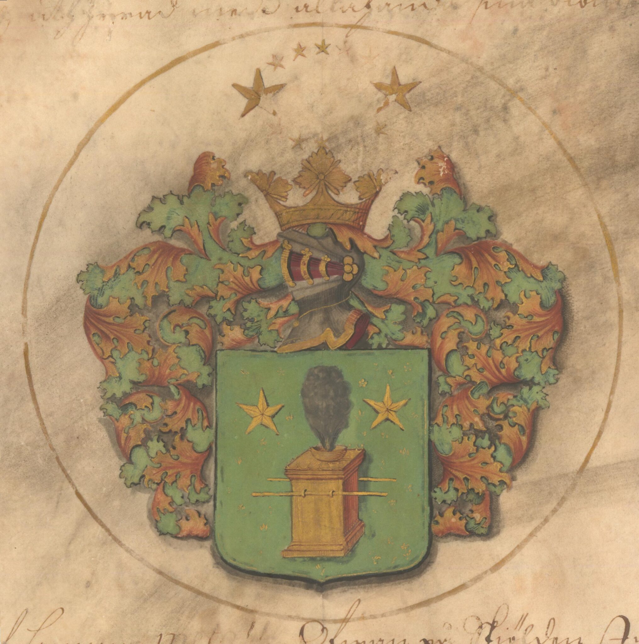 Sköldebrevet i original för utdöda ointroducerade adliga ätten Guthermuth.