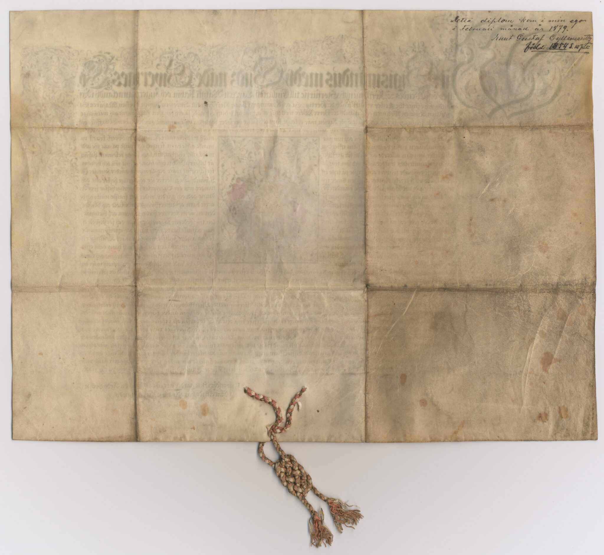 Sköldebrevet i original för adliga ätten Gyllencreutz, nr 54.