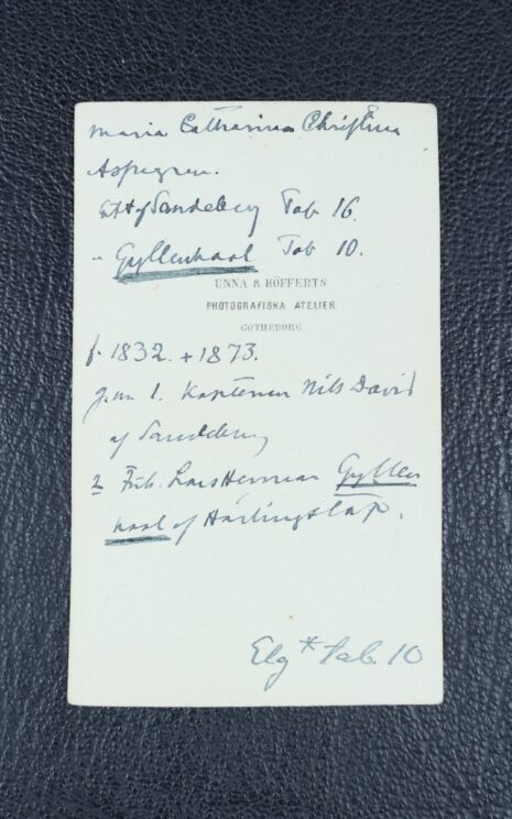 Gyllenhaal till Härlingstorp, MARIA Catharina Christina, född Aspegrén. Född 1831-02-14. Död 1873-08-03.