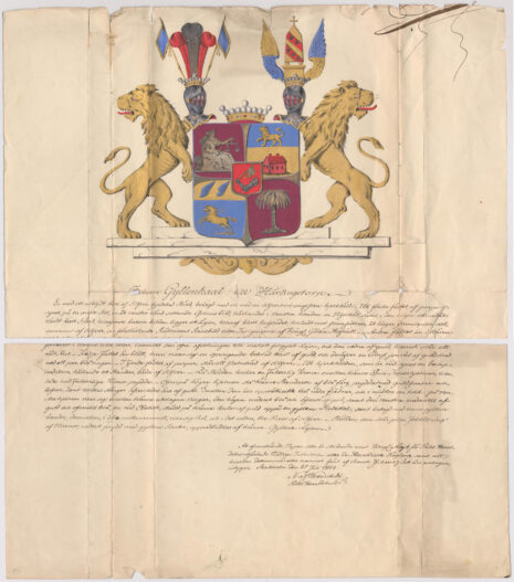 Utförd: Riksheraldiker Niklas Joakim af Wetterstedt, Stockholm, 1843-07-25.