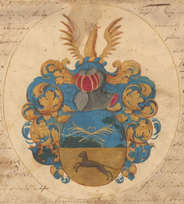 Sköldebrevet i original för adliga ätten Gyllenpalm, nr 1023.