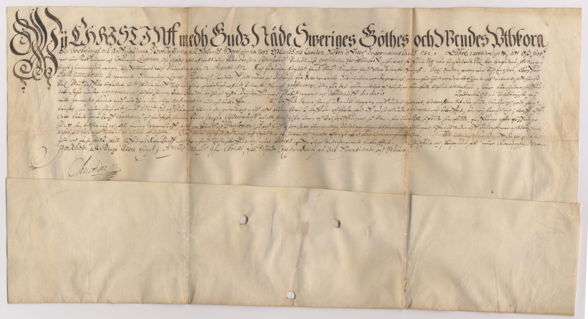 Utfärdat: Kristina, Stockholms slott, 1647-04-22.