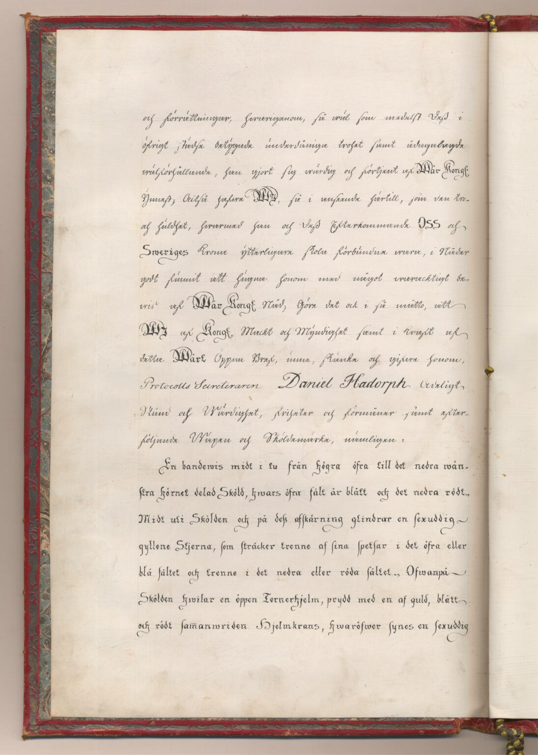 Sköldebrevet i original för utdöda adliga ätten Hadorph, nr 2243.