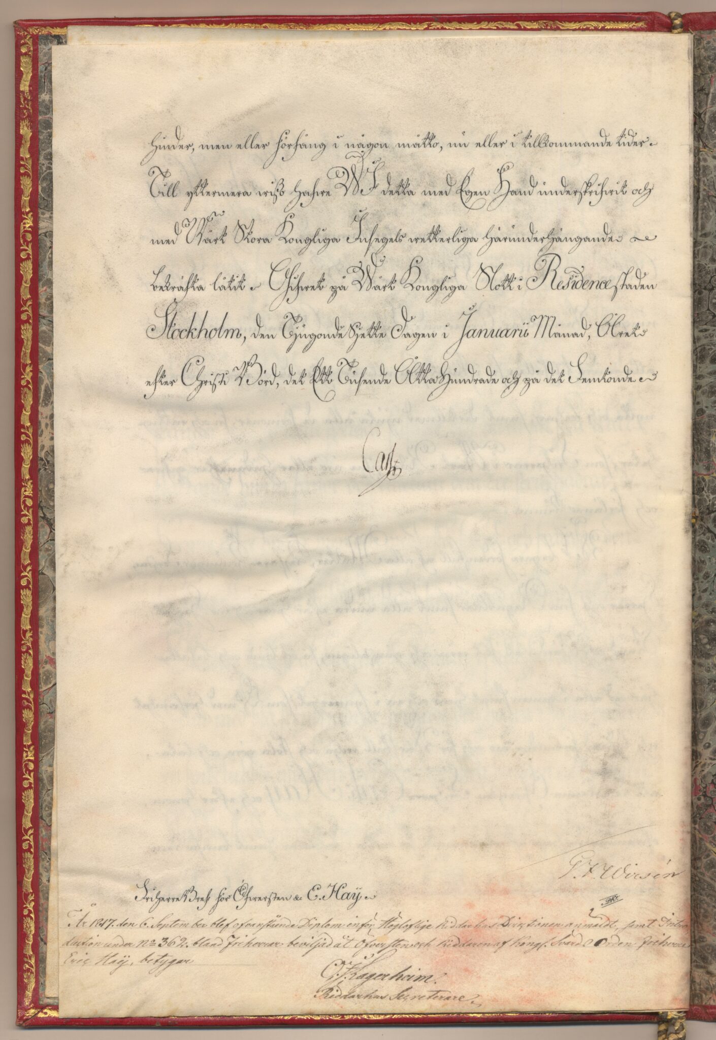 Friherrebrevet i original för friherrliga ätten Haij, nr 362.