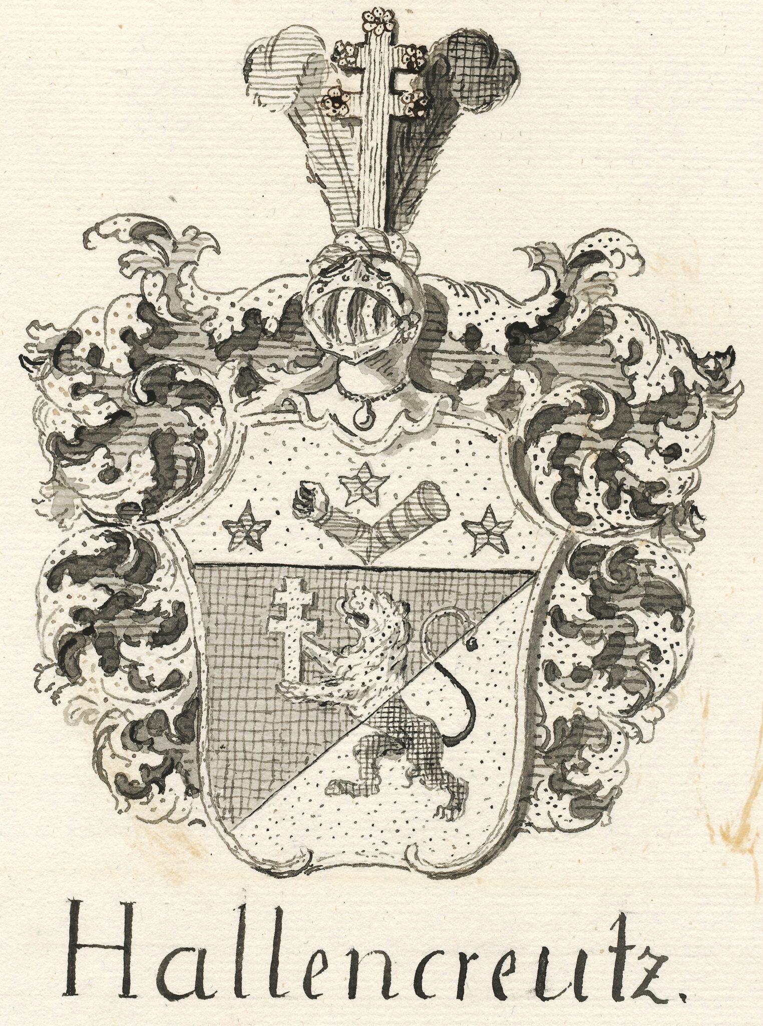 Sköldebrevet i avskrift för adliga ätten Hallencreutz, nr 2016.
