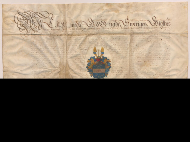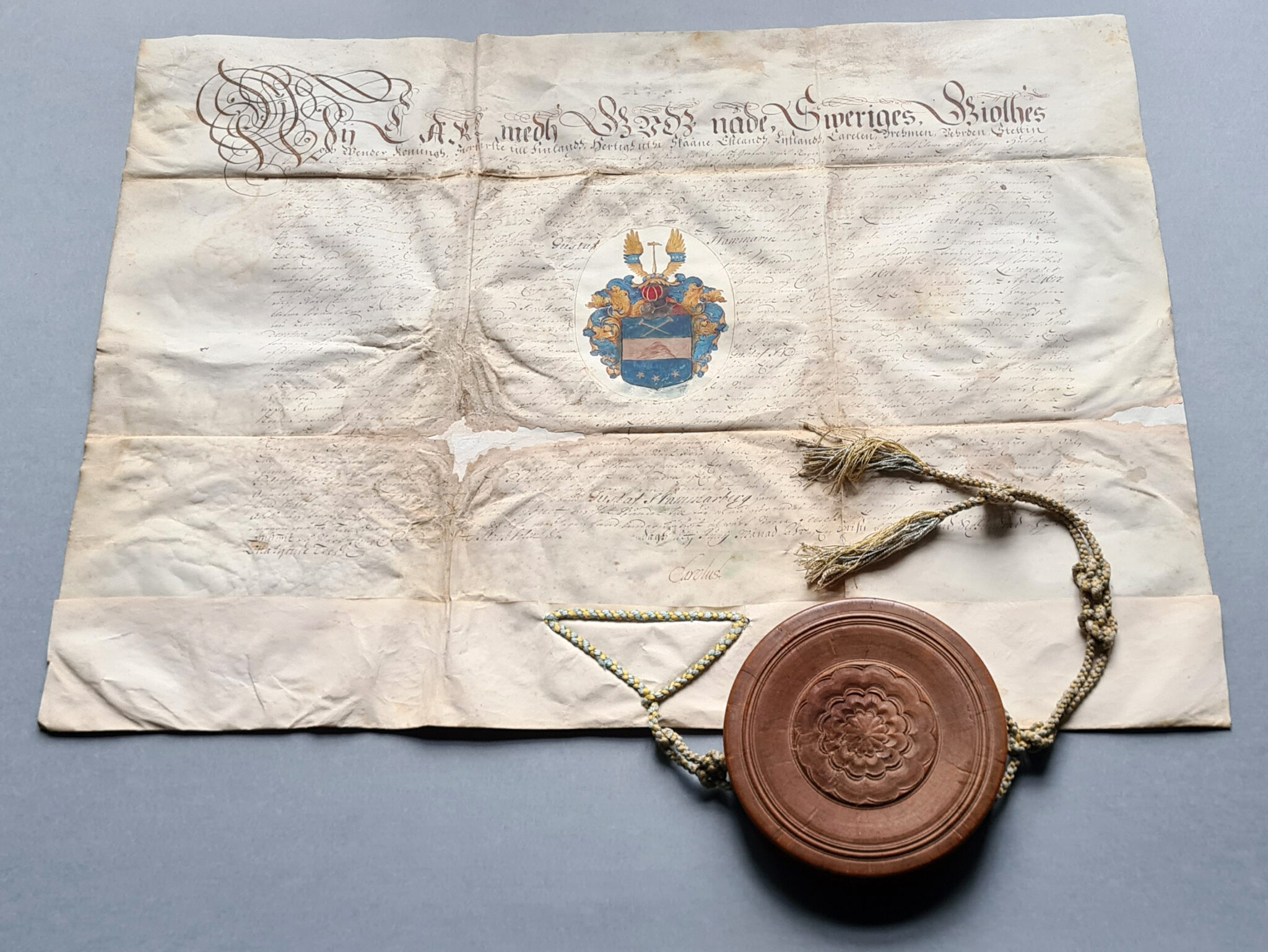 Sköldebrevet i original för utdöda adliga ätten Hammarberg, nr 1053.