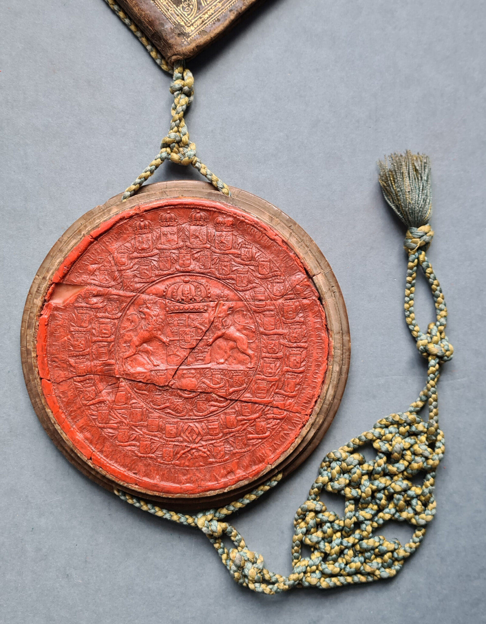 Sköldebrevet i original för utdöda adliga ätten Hårleman, nr 1371.