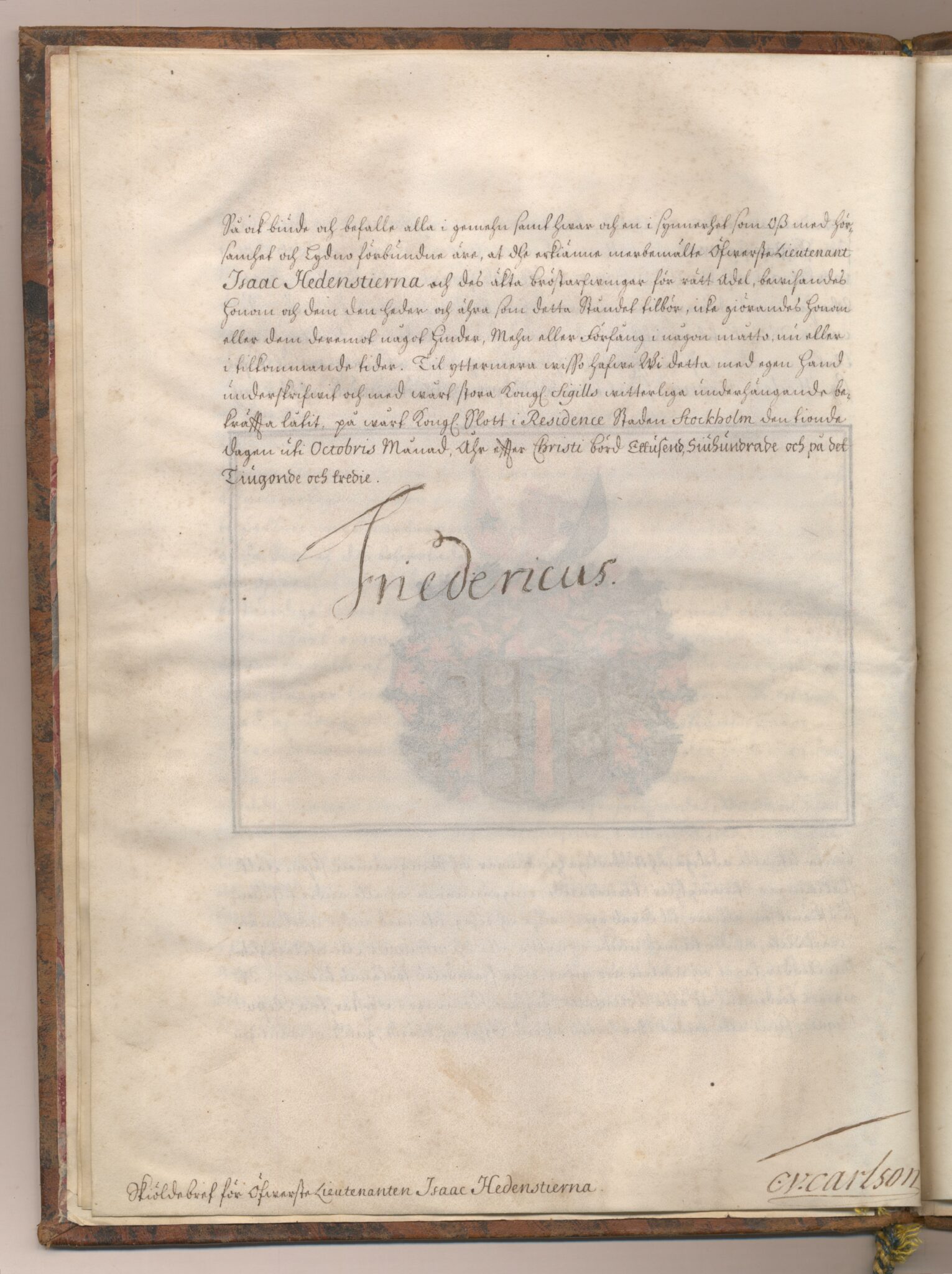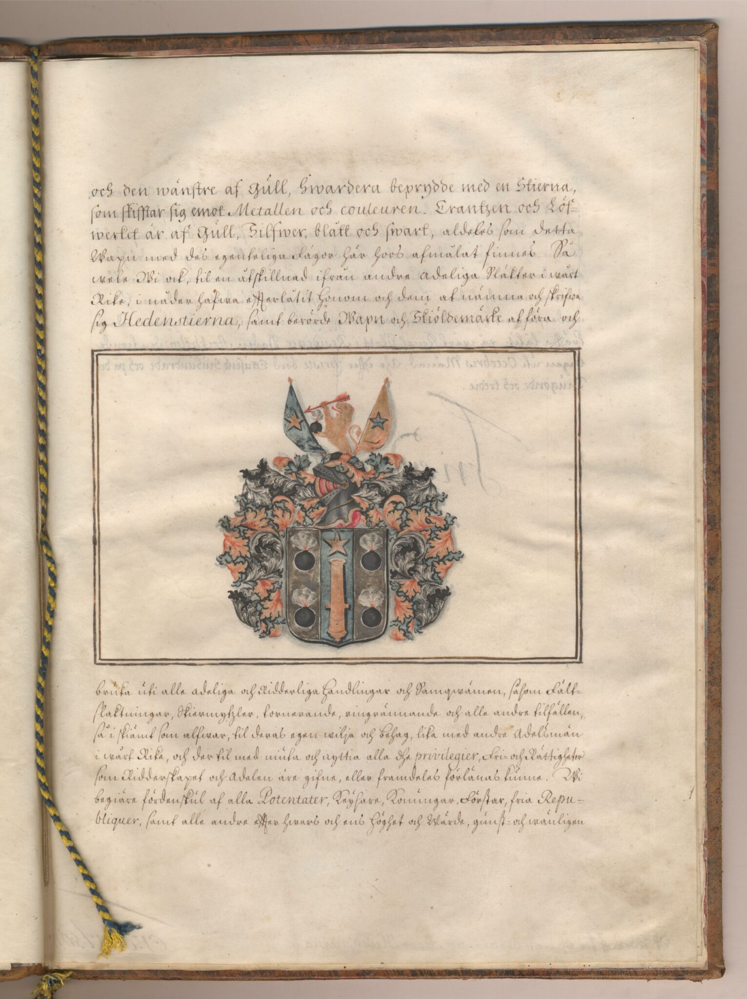 Sköldebrevet i original för adliga ätten Hedenstierna, nr 1753.