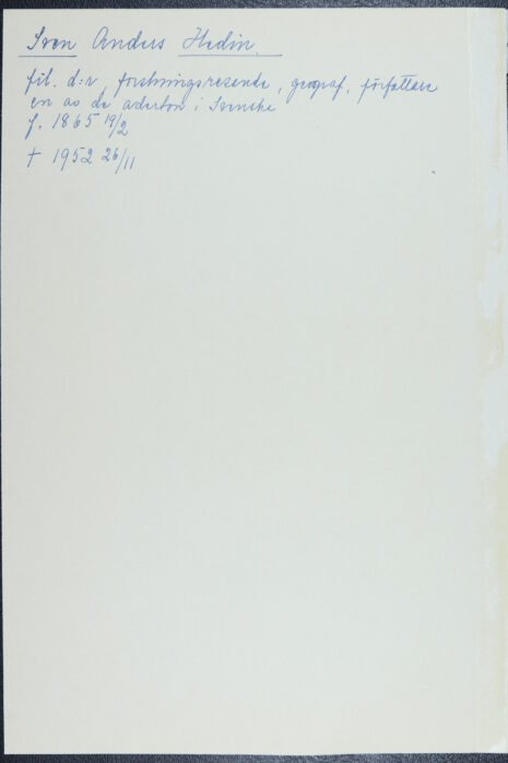 Hedin, SVEN Anders. Född 1865-02-19. Död 1952-11-26.