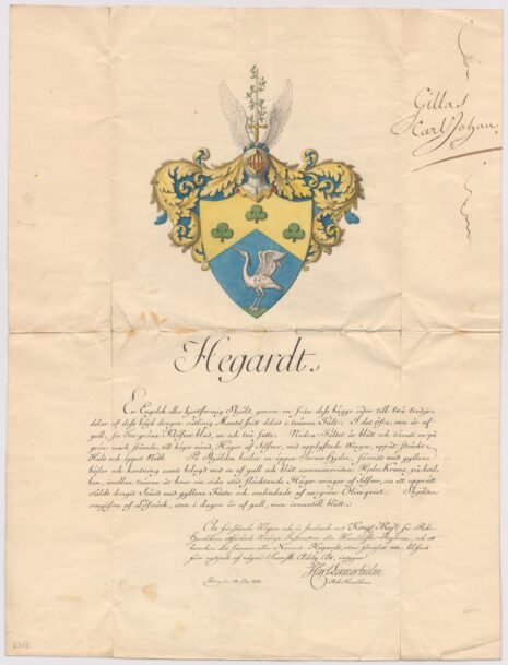 Approberad vapenritning för adliga ätten Hegardt, nr 2262.