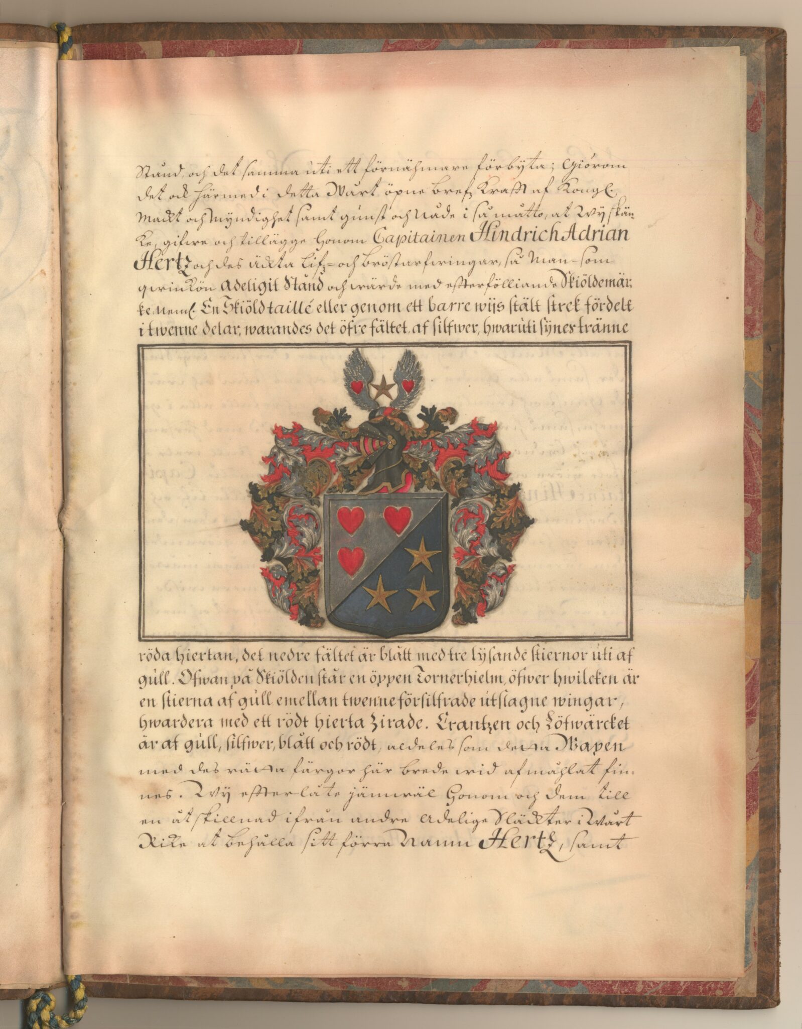 Sköldebrevet i original för utdöda adliga ätten Hertz, nr 1548.