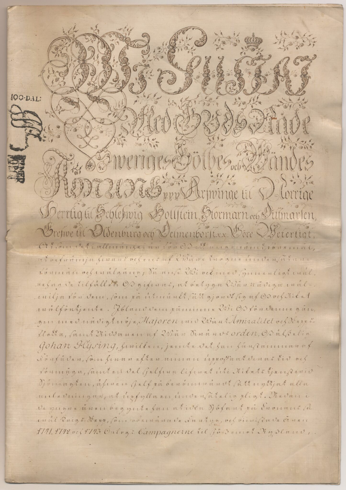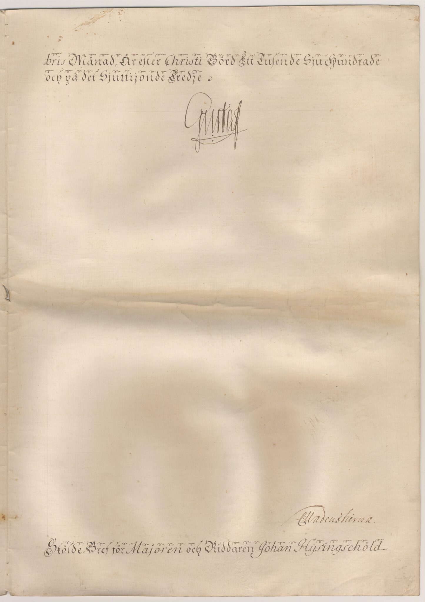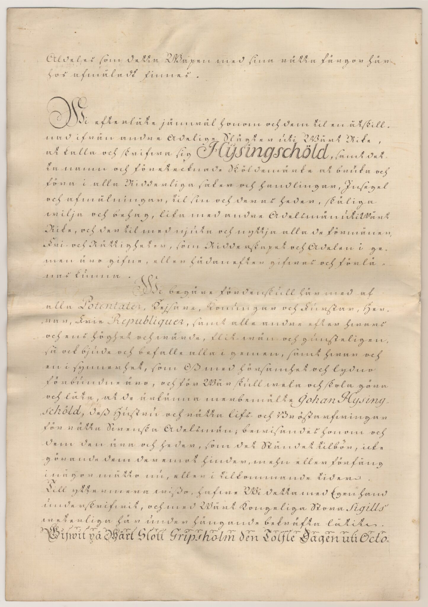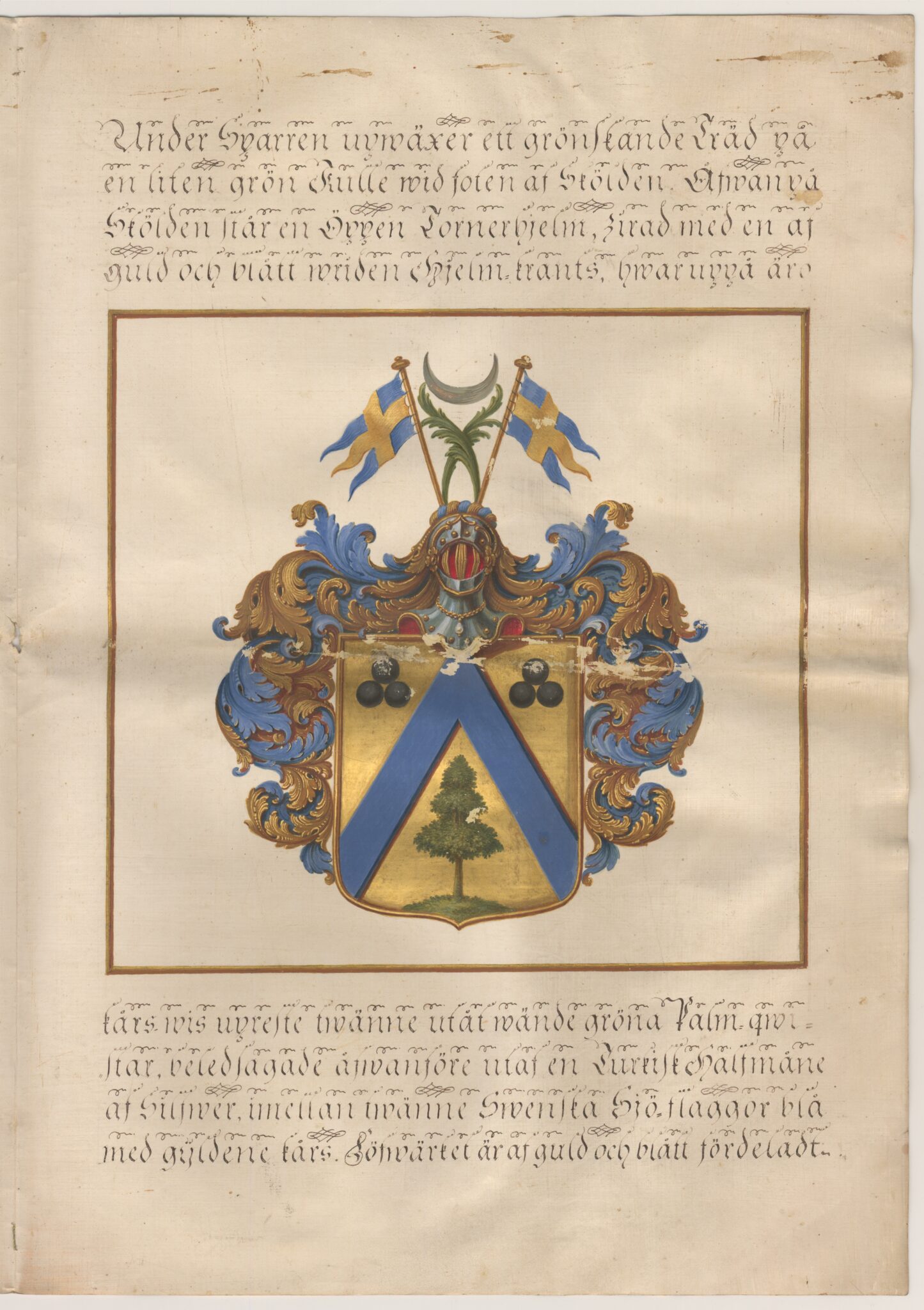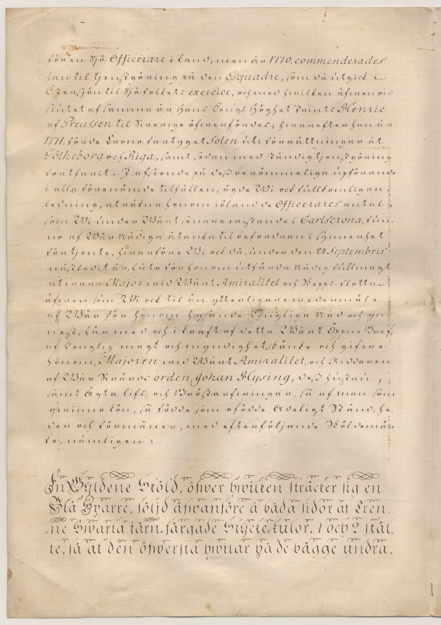 Sköldebrevet i original för utdöda adliga ätten Hisingsköld, nr 2101.