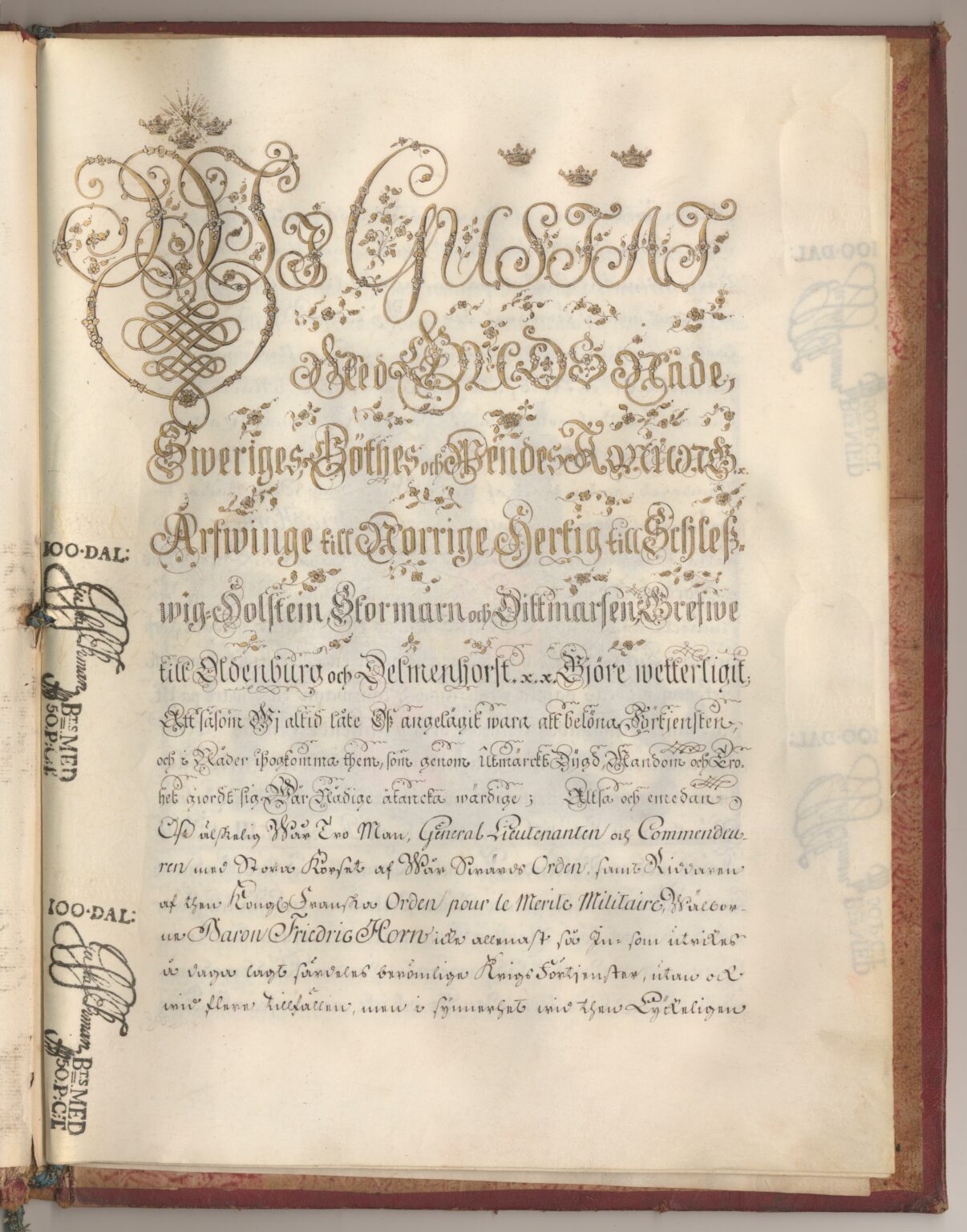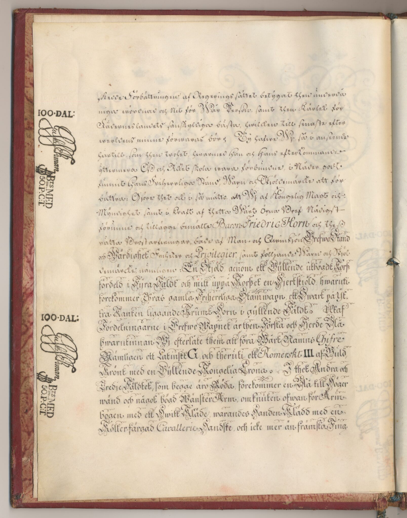 Grevebrevet i original för grevliga ätten Horn af Åminne, nr 92.