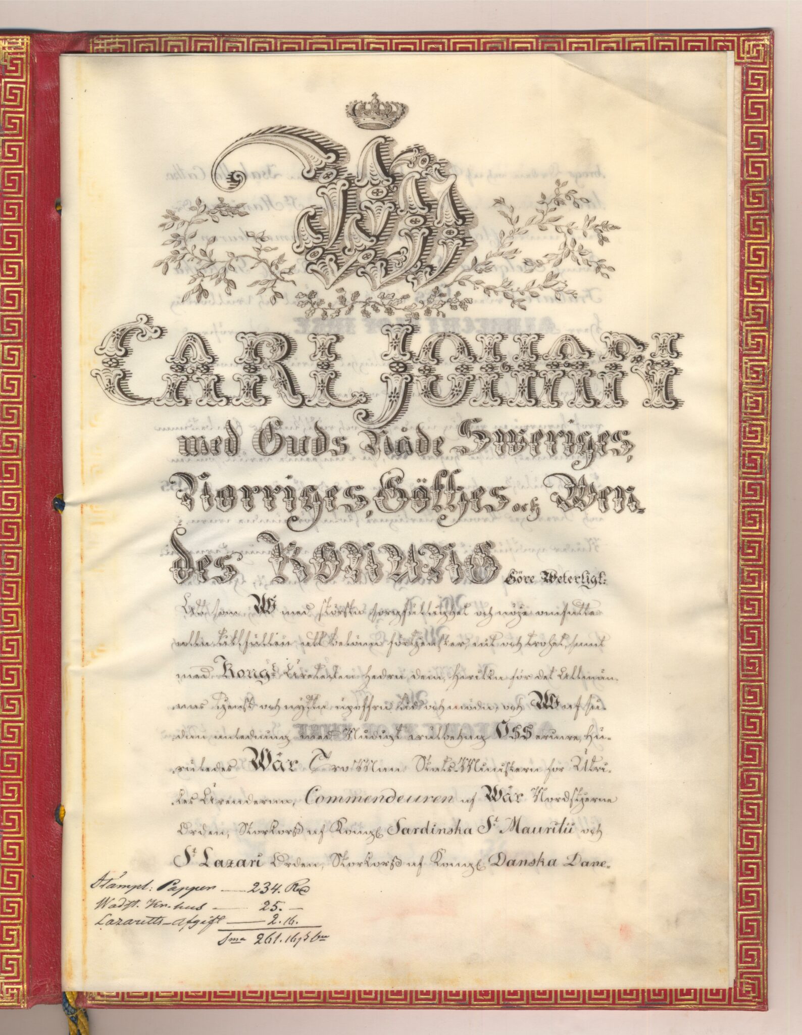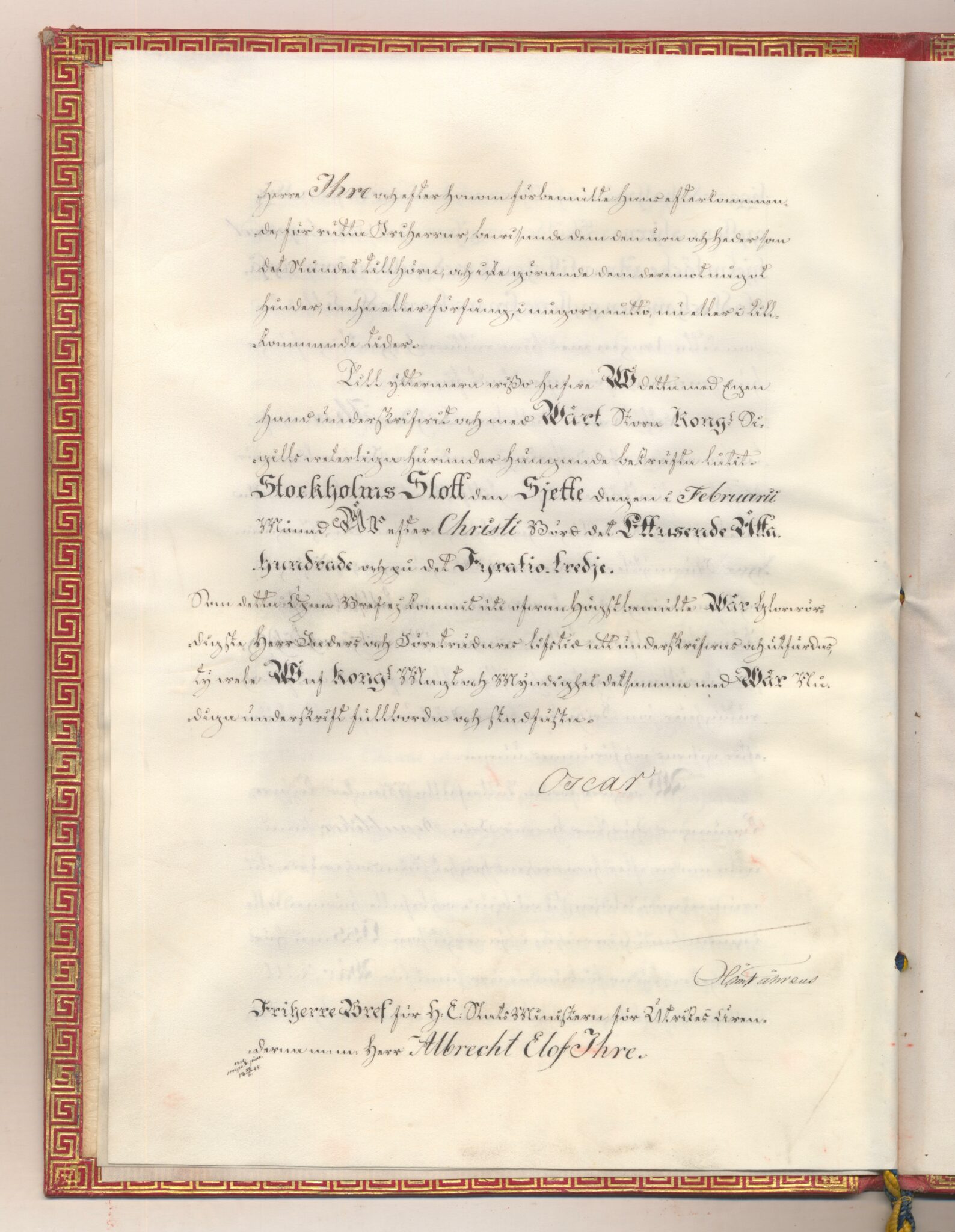 Utfärdat: Oscar I, plats och datum ej angivet.