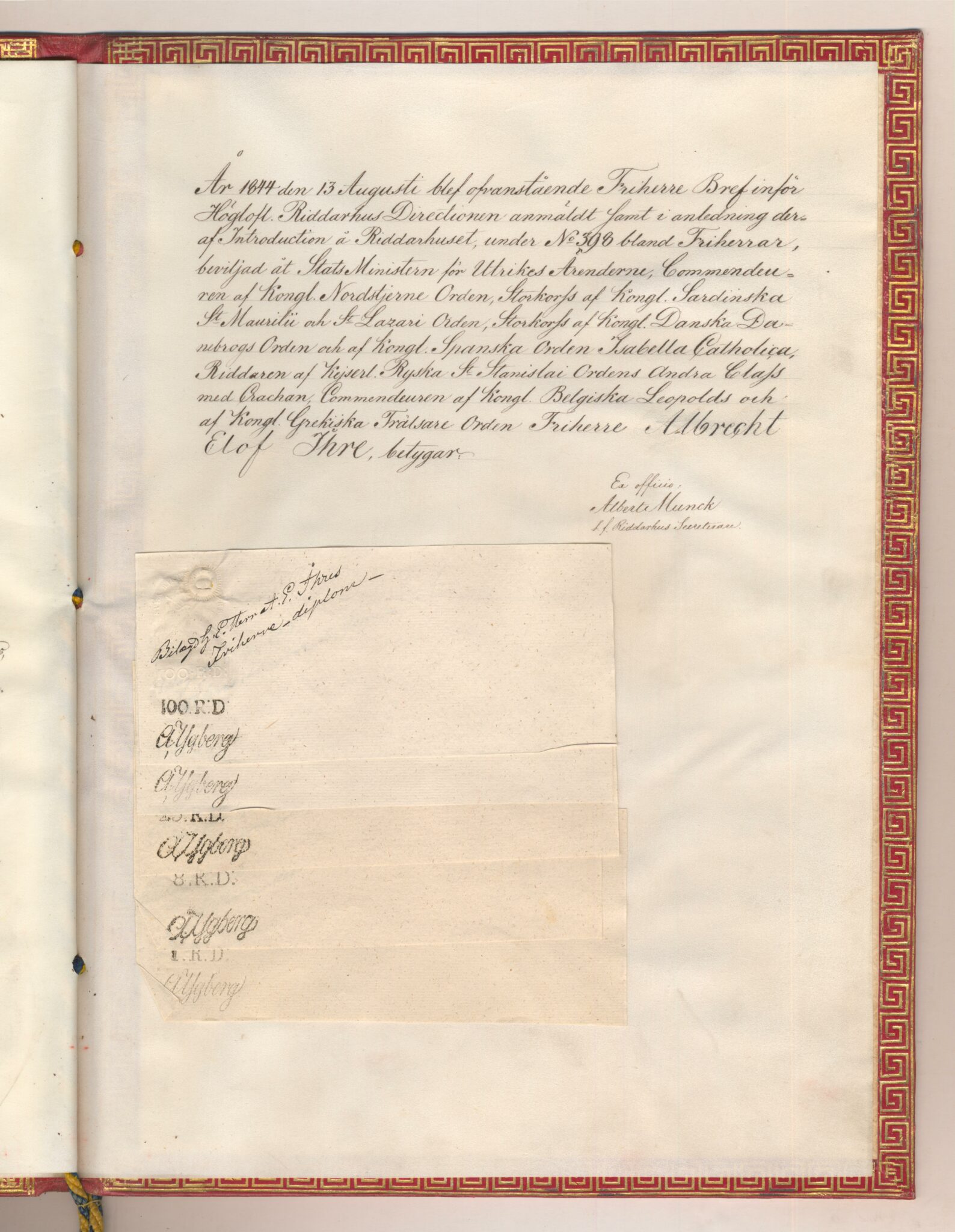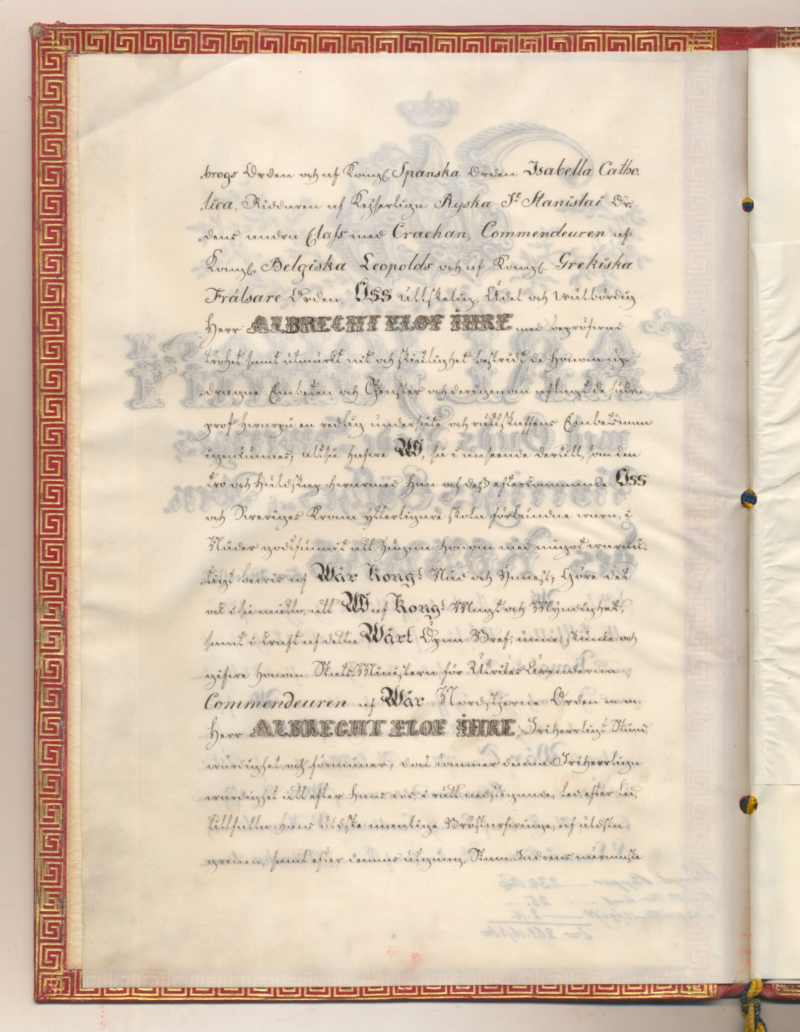 Friherrebrevet i original för utdöda friherrliga ätten Ihre, nr 398.