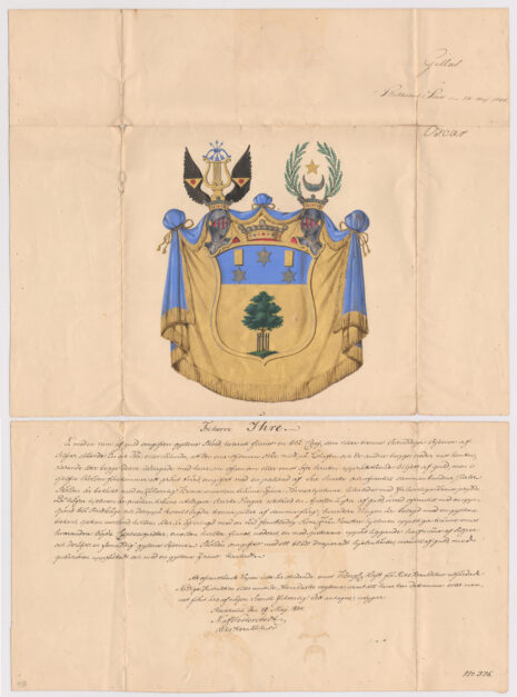 Utförd: Riksheraldiker Niklas Joakim af Wetterstedt, Stockholm, 1844-05-11.