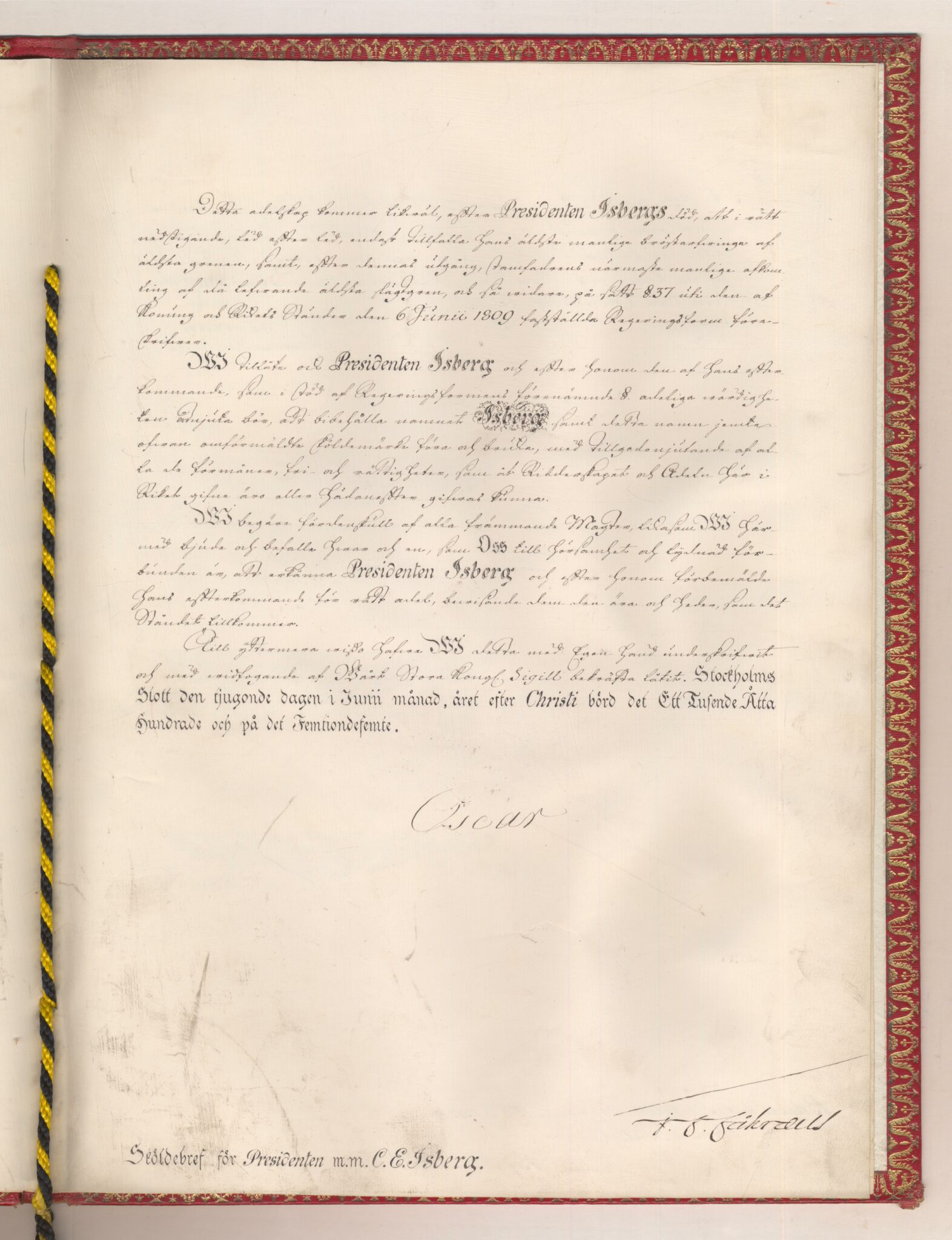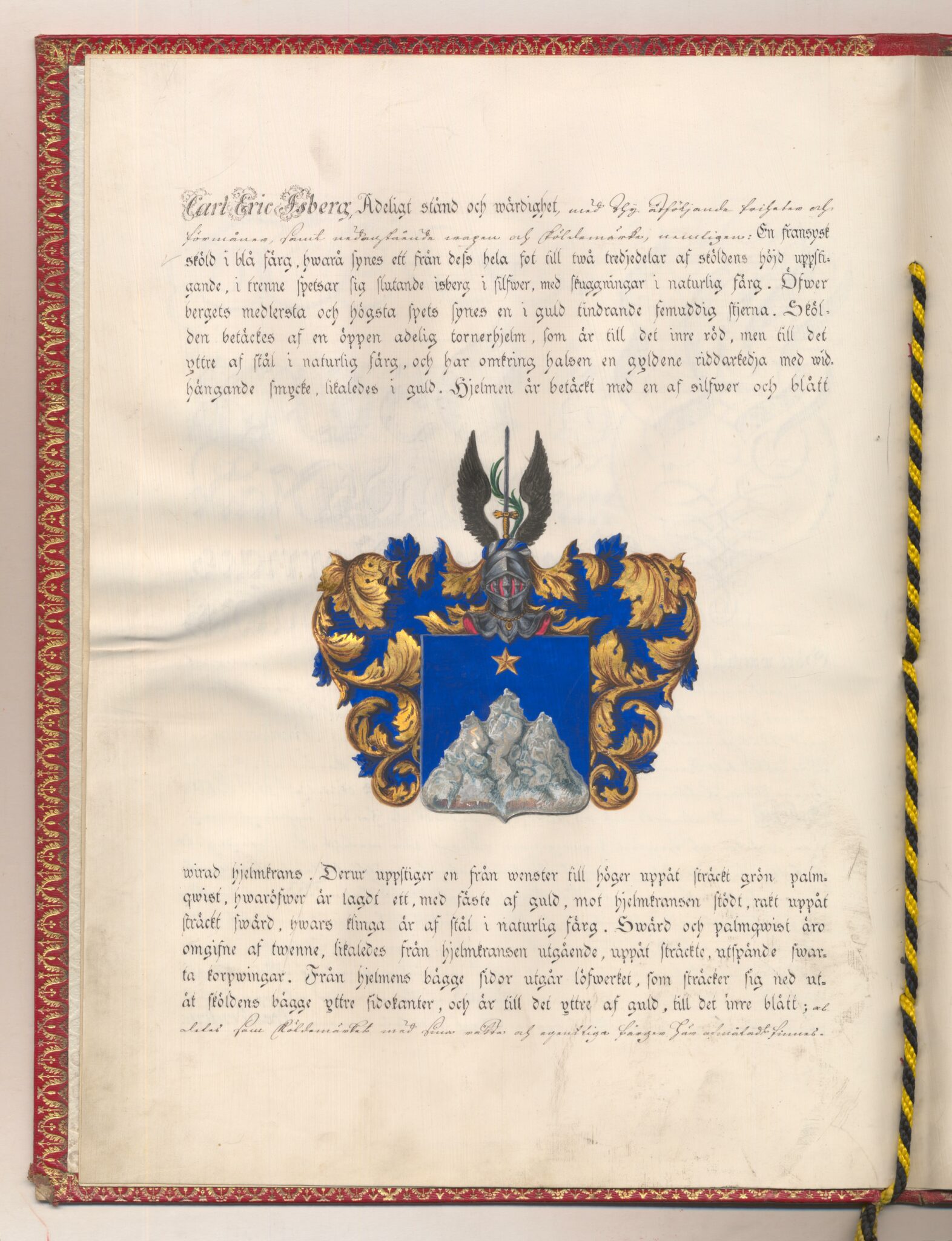 Sköldebrevet i original för utdöda adliga ätten Isberg, nr 2323.