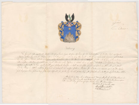 Utförd: Riksheraldiker August Wilhelm Stiernstedt, Stockholm, 1855-12-31.