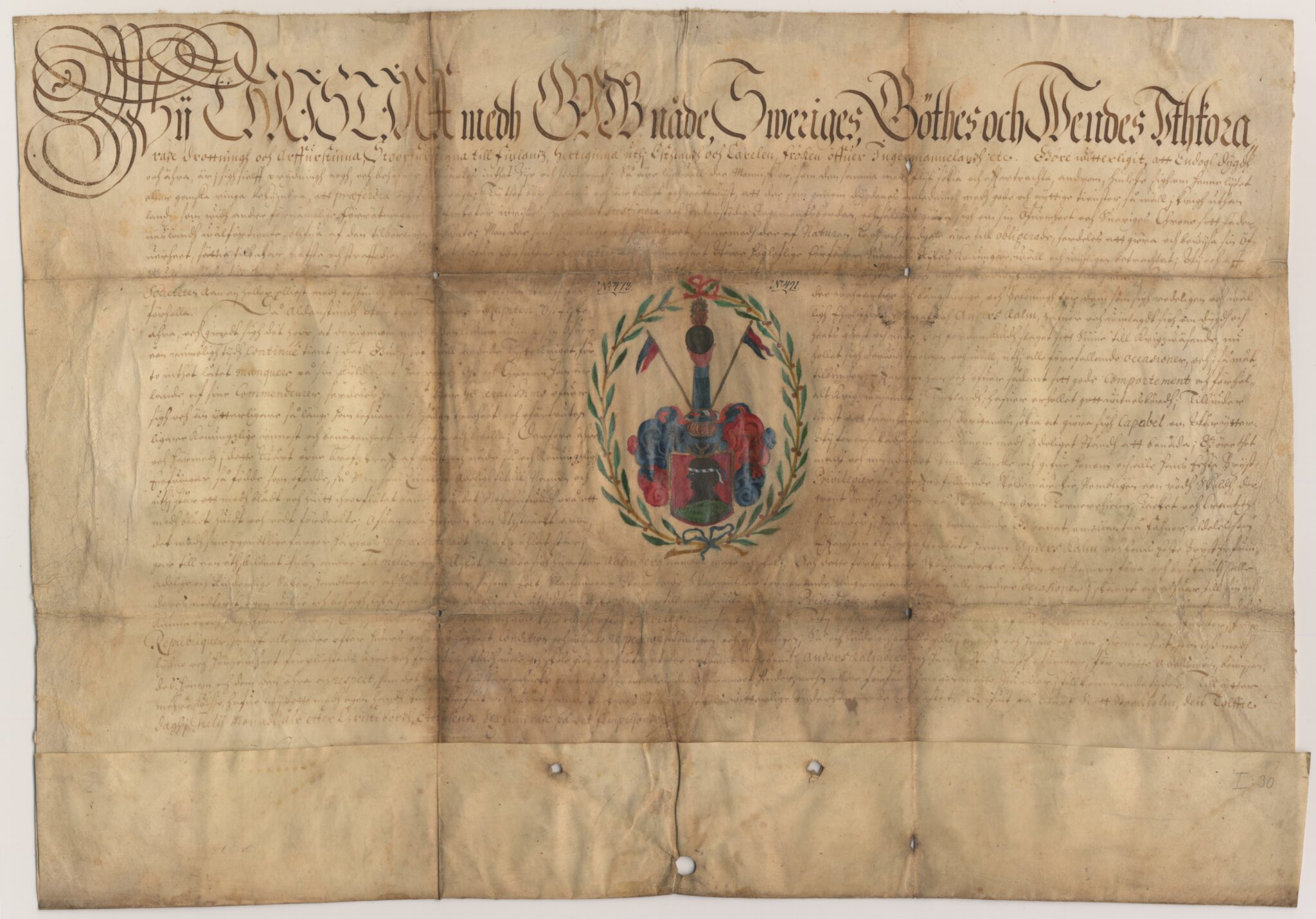 Sköldebrevet i original för utdöda adliga ätten Kalmberg, nr 491.