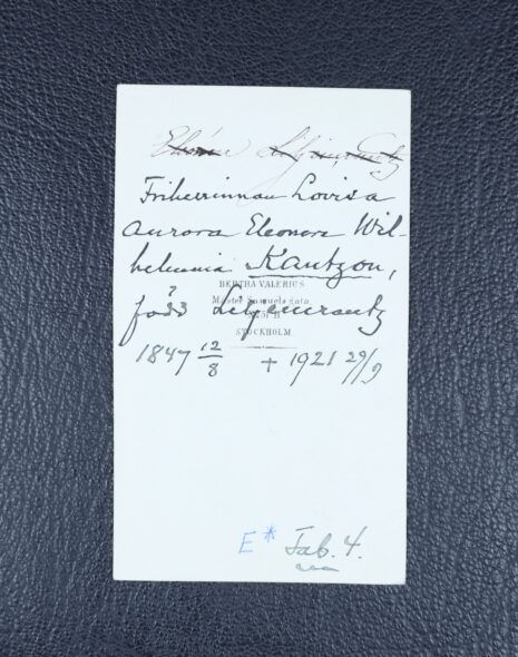 Kantzow, Lovisa Aurora Eleonora Vilhelmina, född friherrinna Liljencrantz, nr 297. Född 1847-08-12. Död 1921-09-29.