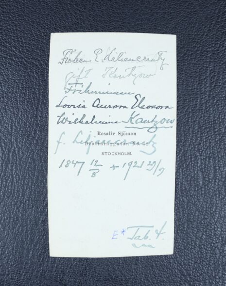 Kantzow, Lovisa Aurora Eleonora Vilhelmina, född friherrinna Liljencrantz, nr 297. Född 1847-08-12. Död 1921-09-29.