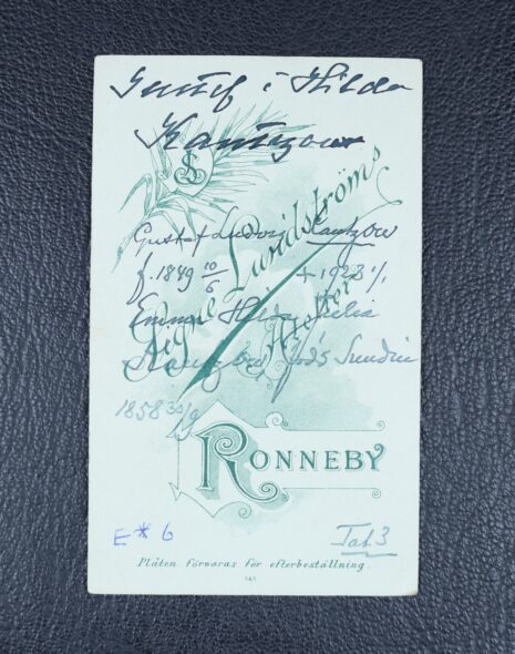 Kantzow, Emma HILDA Julia, född Sundin. Född 1858-09-30. Död 1940-02-28.