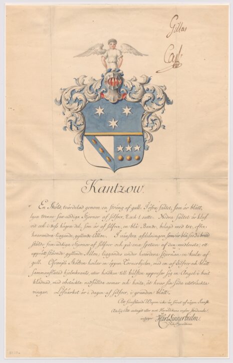 Approberad vapenritning för utdöda adliga ätten Kantzow, nr 2223.
