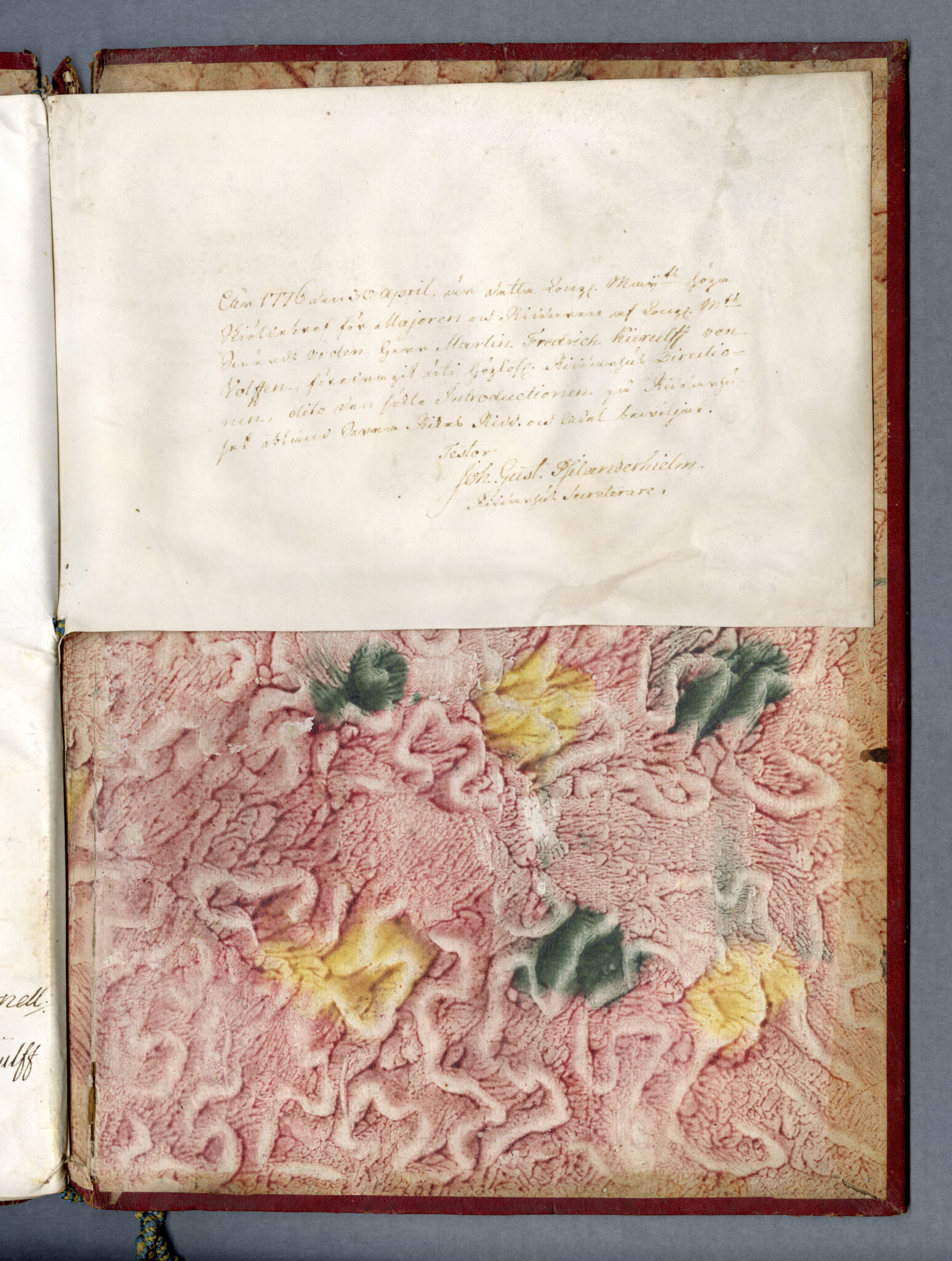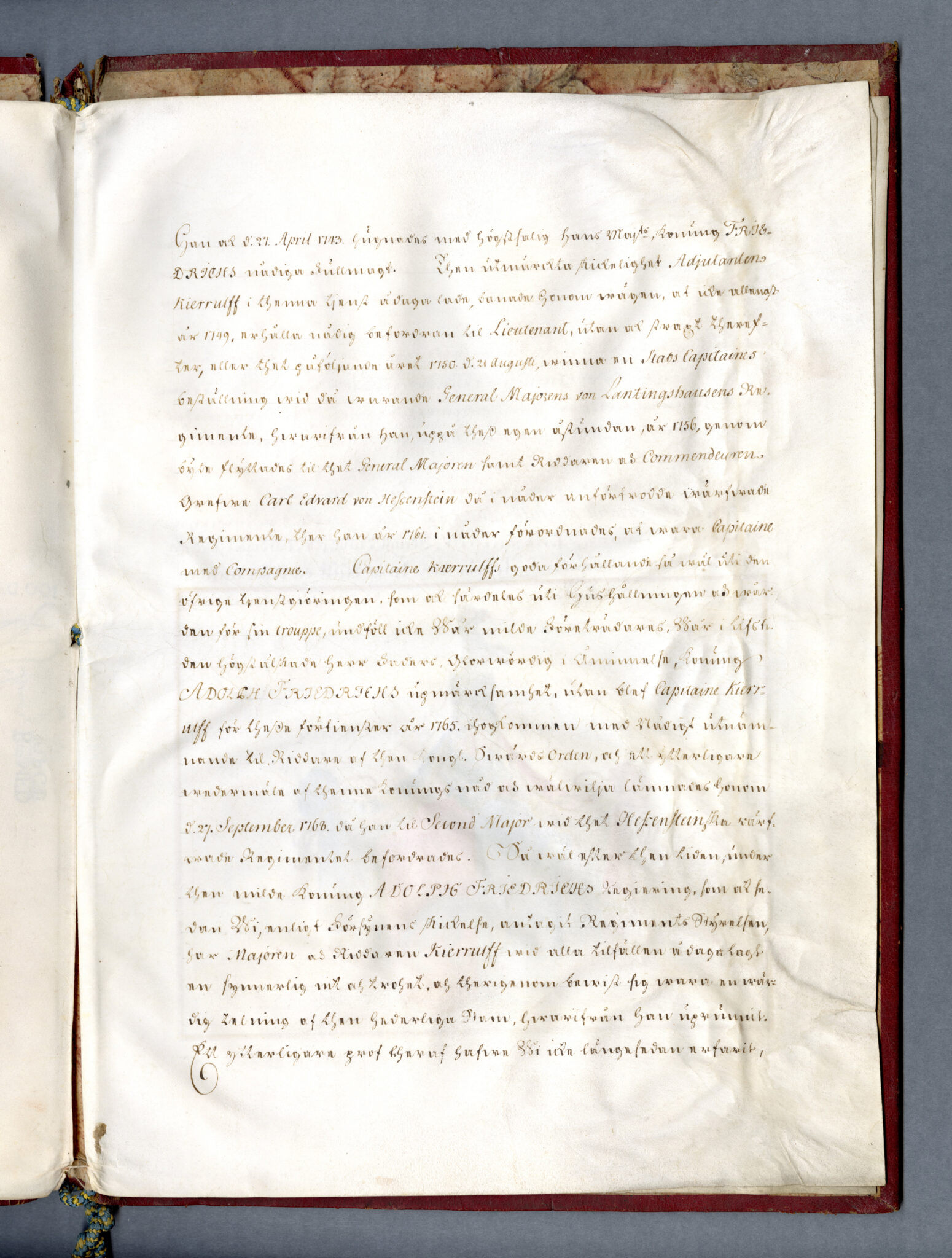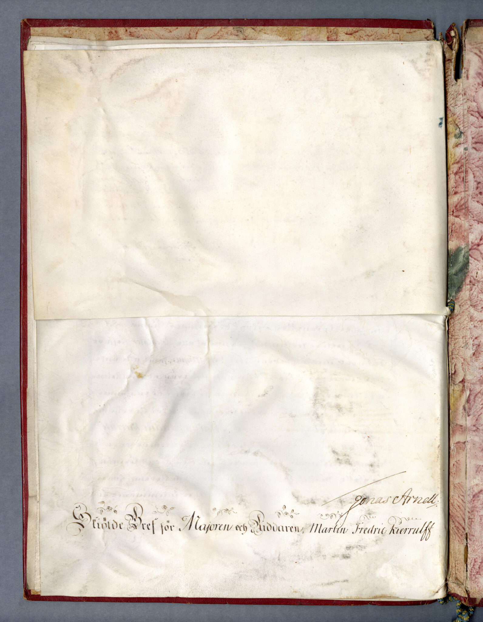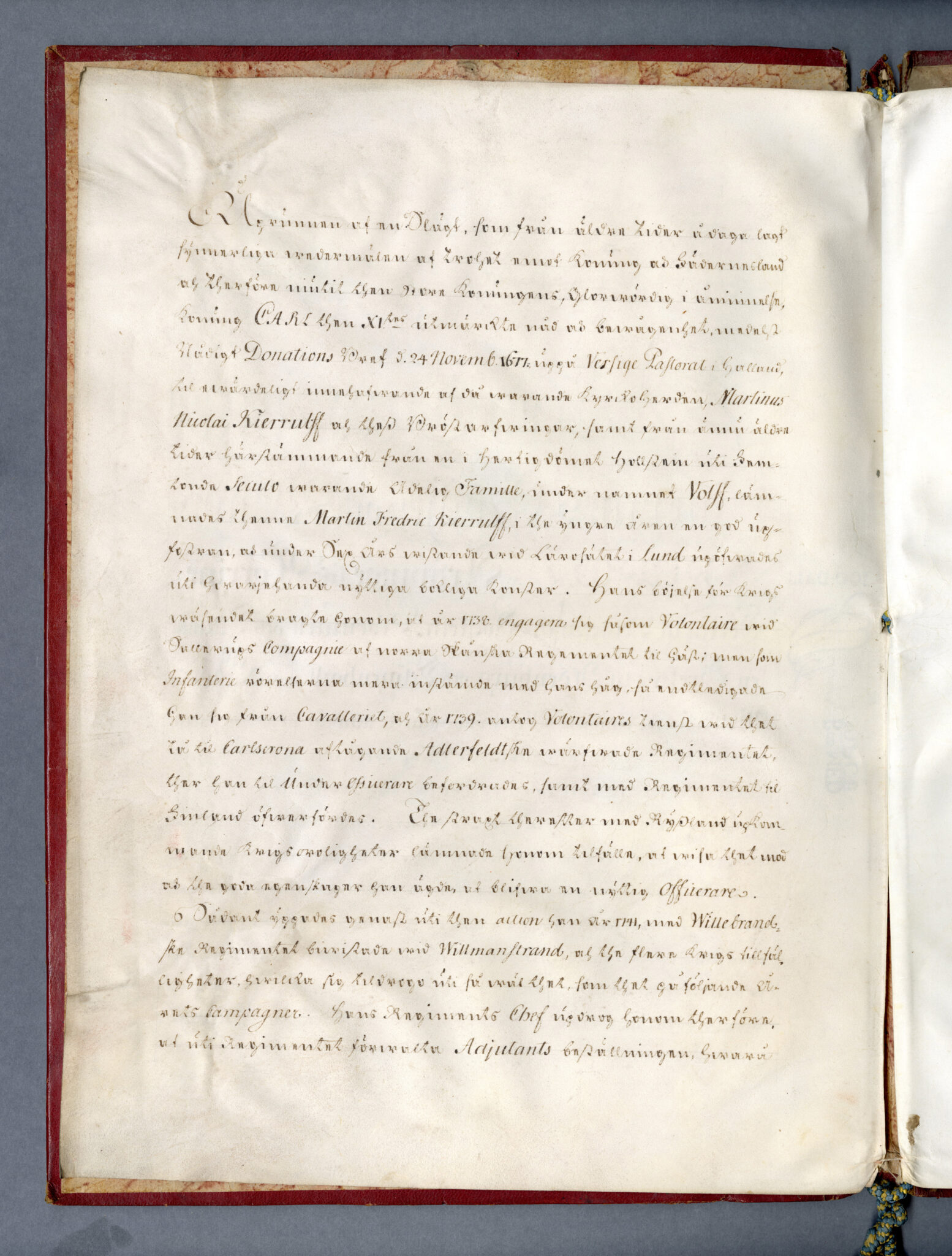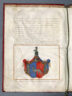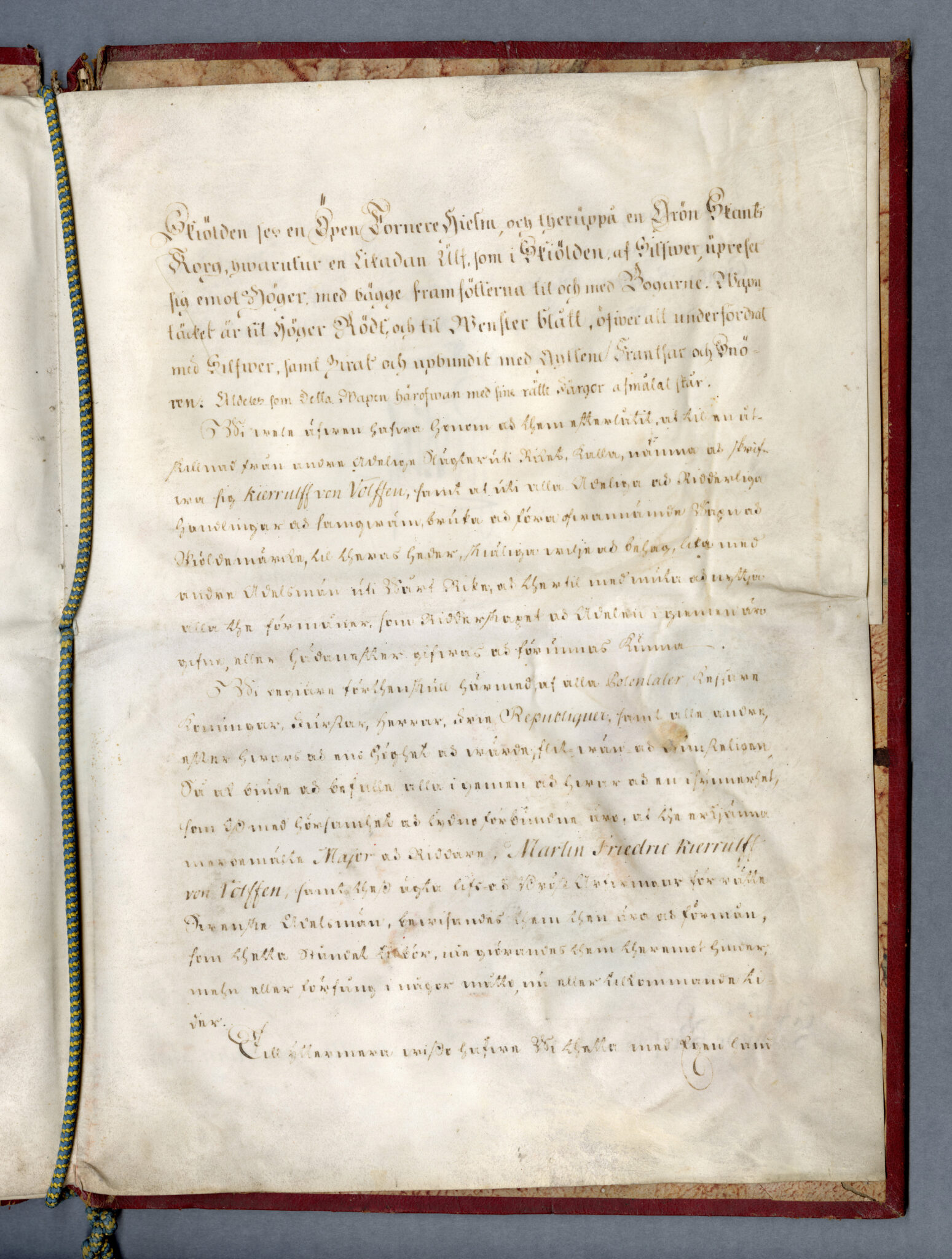 Sköldebrevet i original för utdöda adliga ätten Kjerrulf von Wolffen, nr 2074.