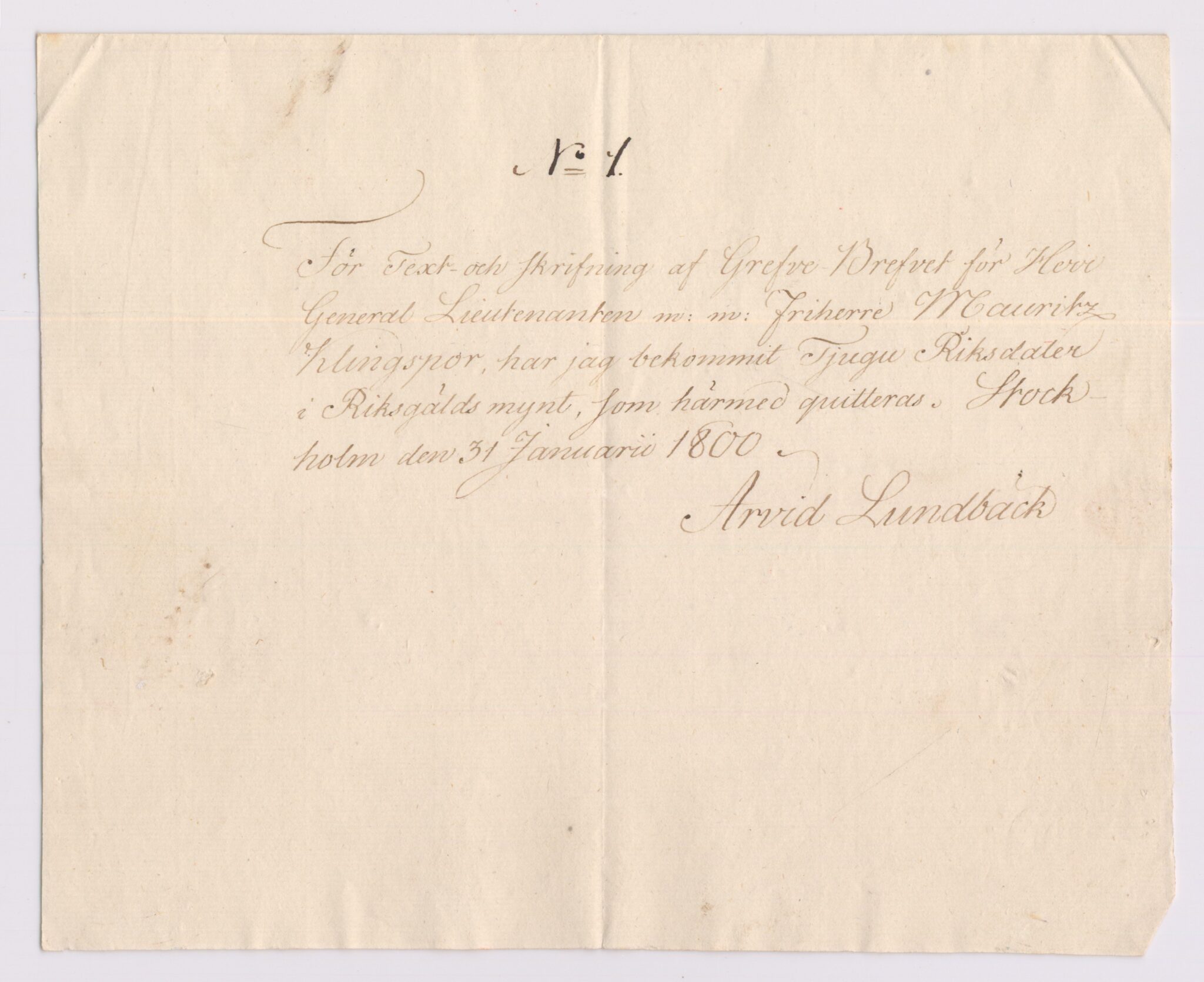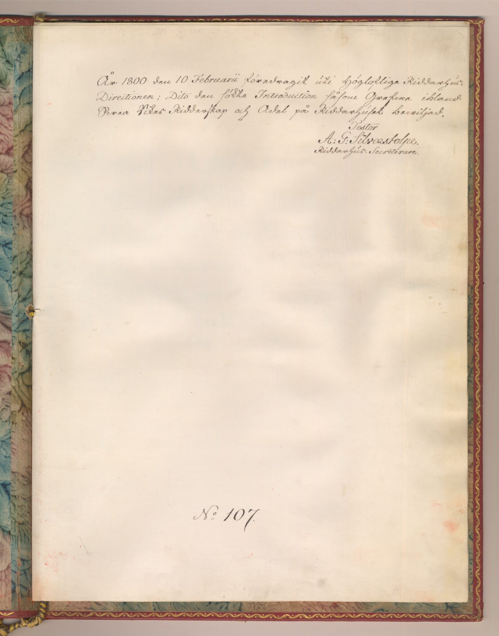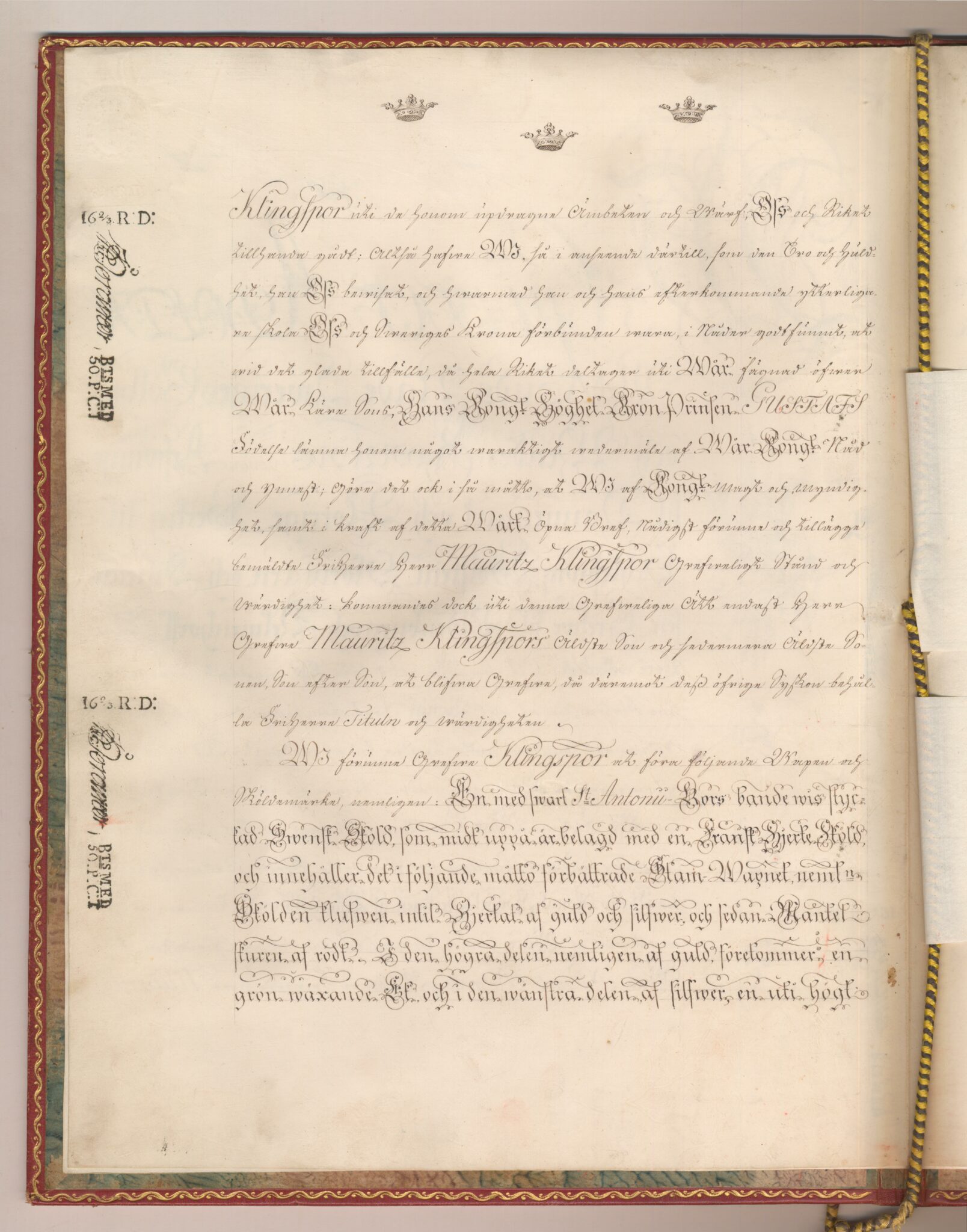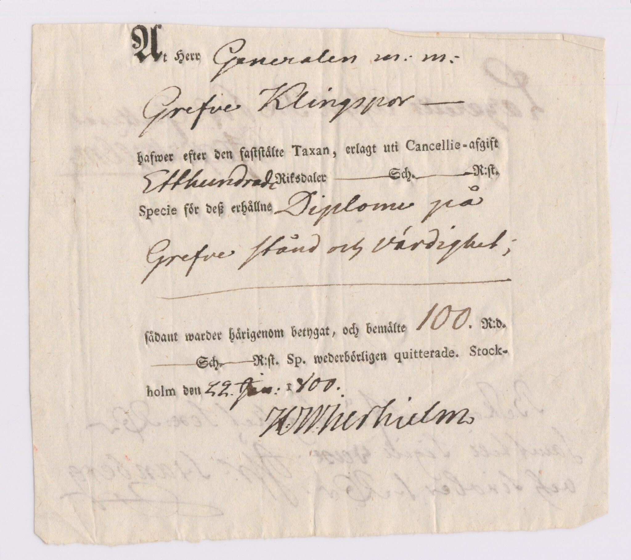 Grevebrevet i original för grevliga ätten Klingspor, nr 107.