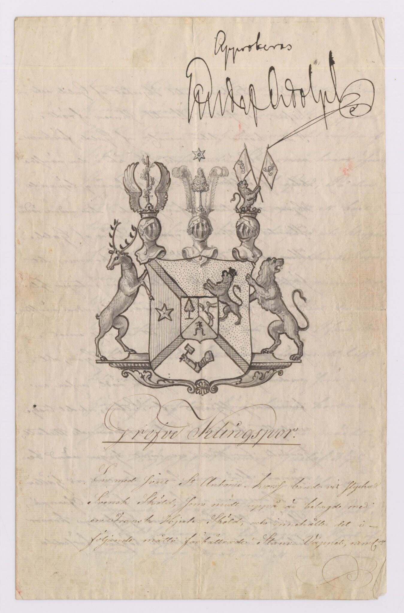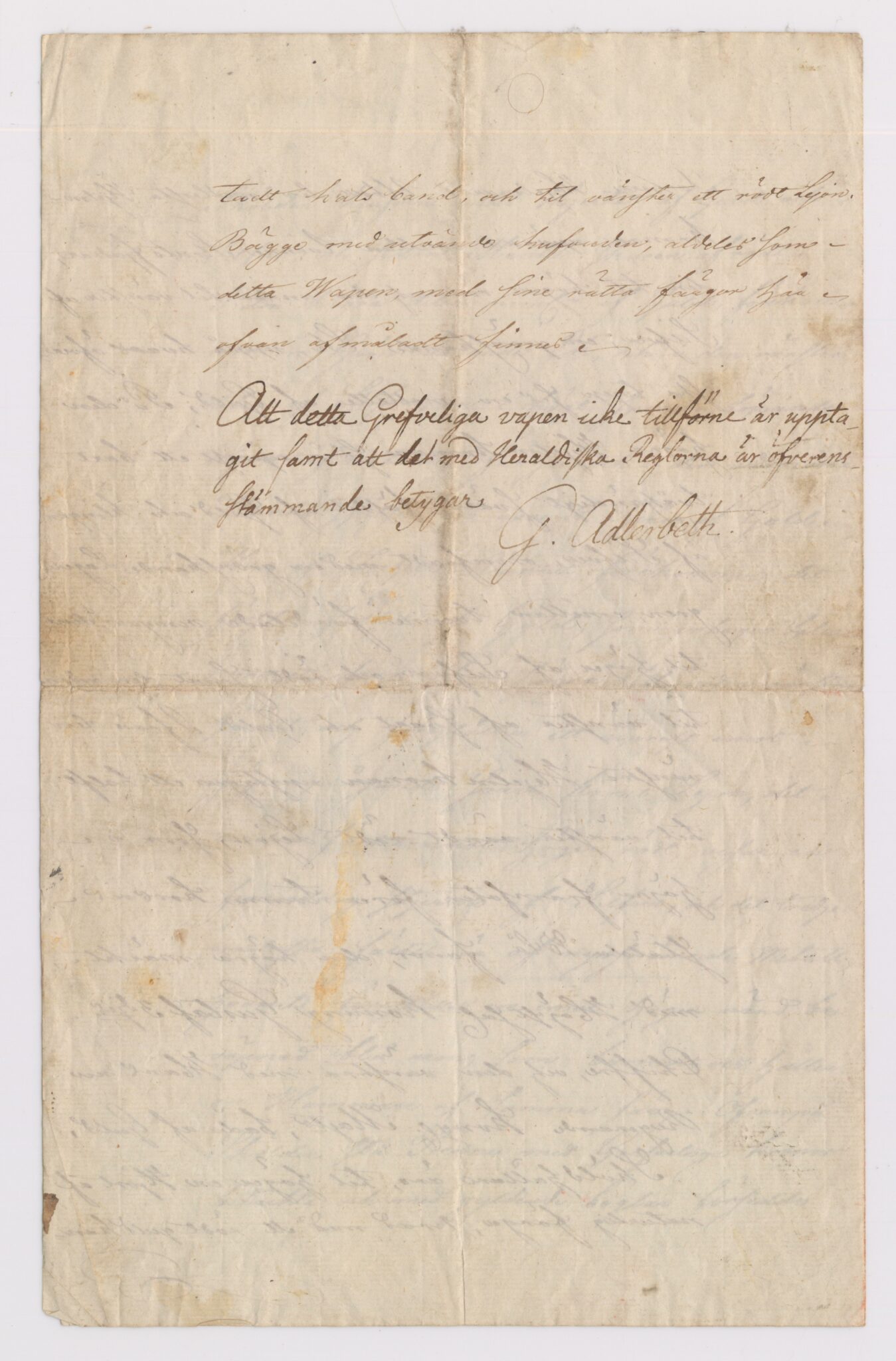 Approberad vapenritning för grevliga ätten Klingspor, nr 107.