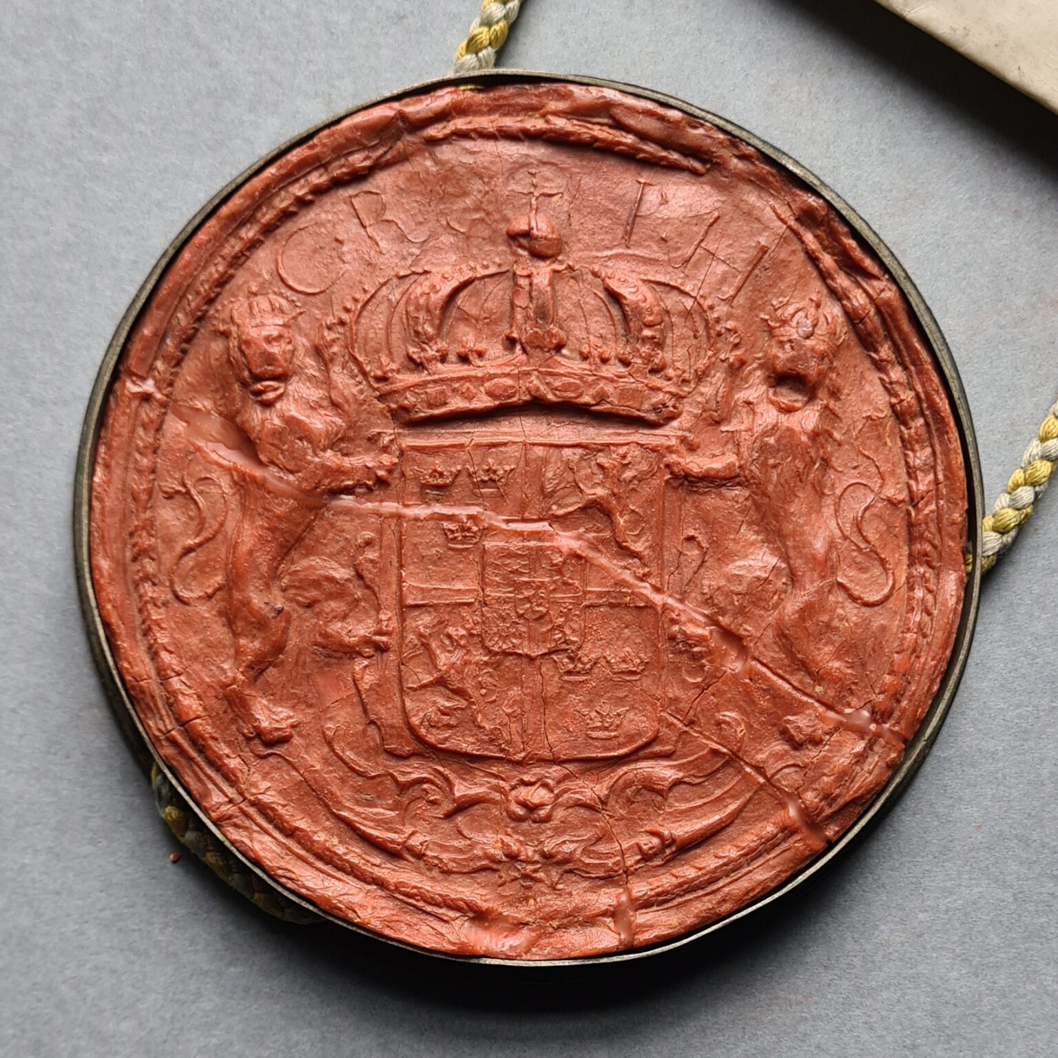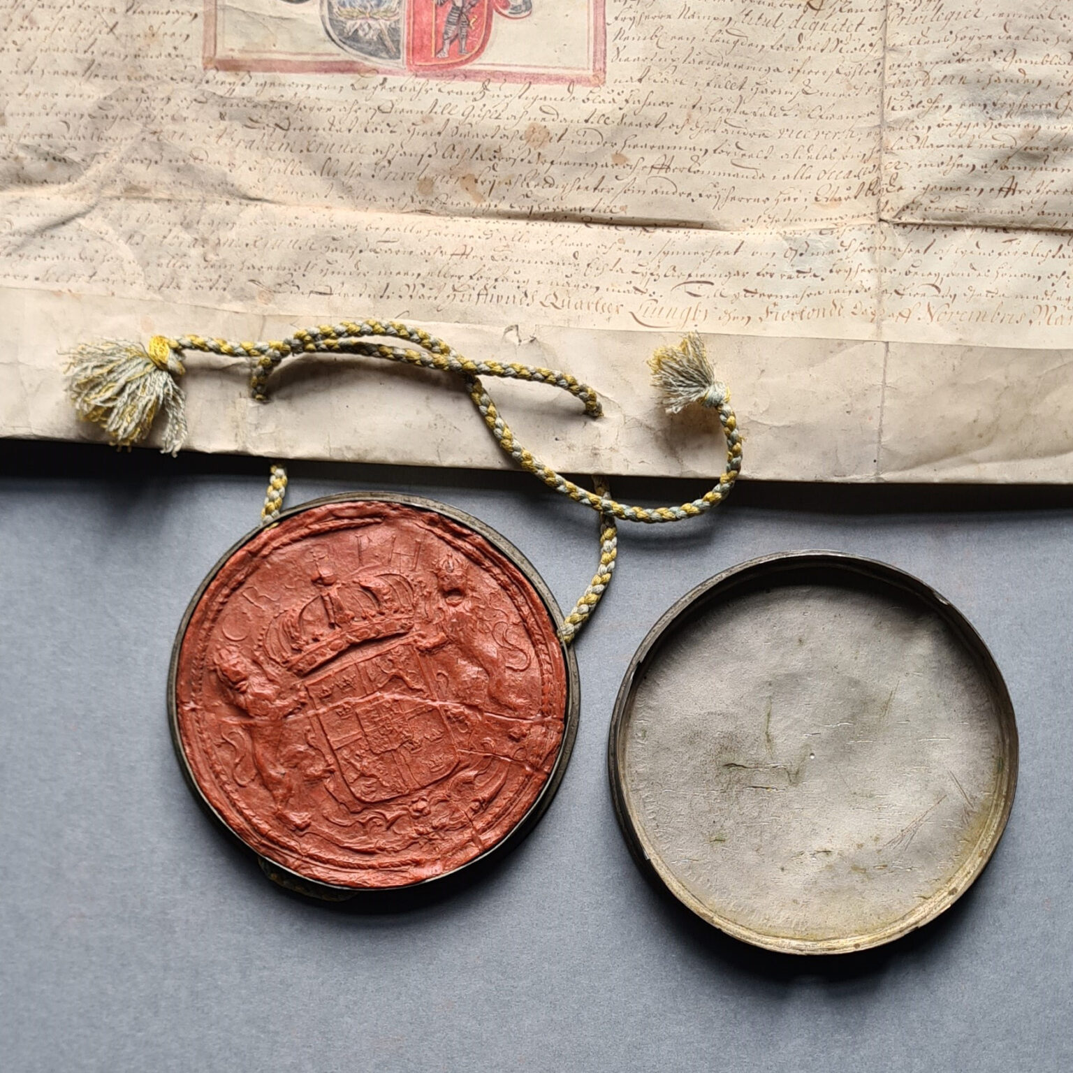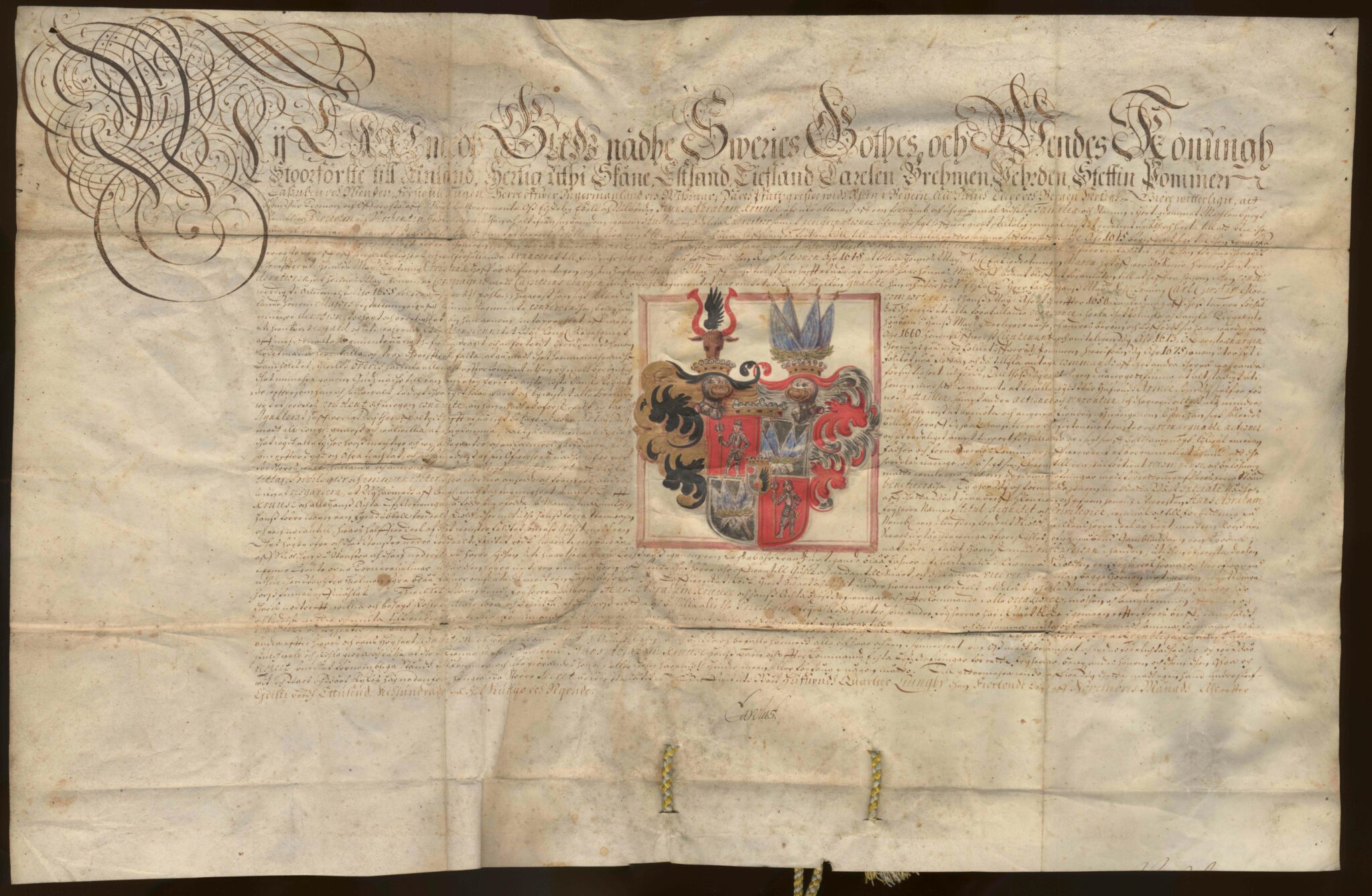 Friherrebrevet i original för friherrliga ätten Kruuse af Verchou, nr 76.