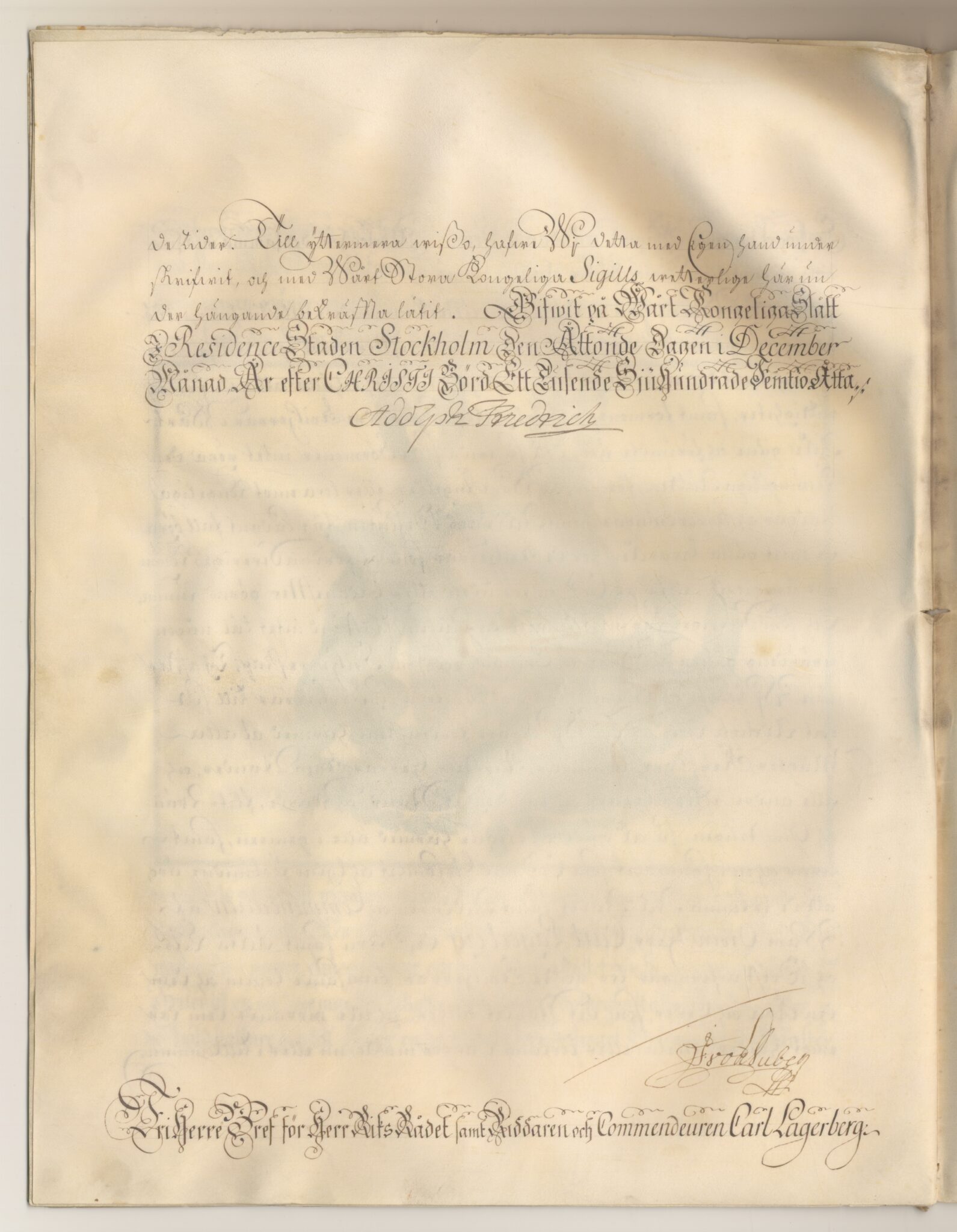 Utnämnd och utfärdat: Adolf Fredrik, Stockholms slott, 1758-12-08.