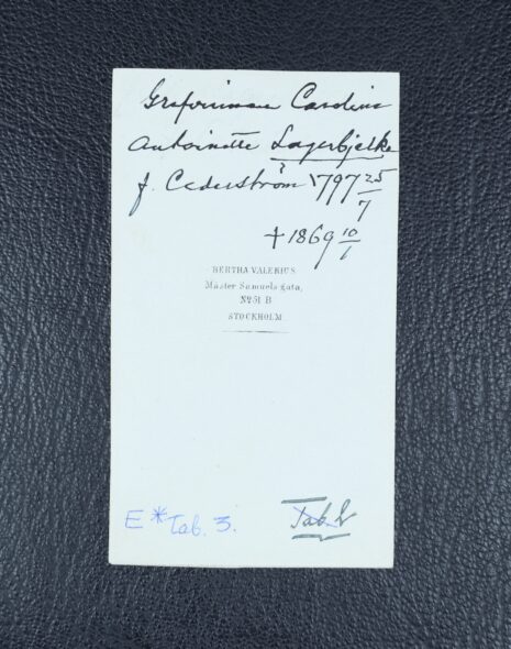 Lagerbjelke, Carolina ANTOINETTE, född friherrinna Cederström, nr 211. Född 1797-07-25. Död 1869-01-10.