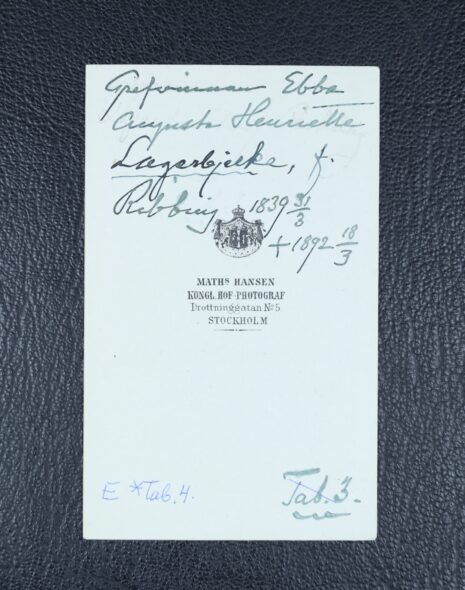 Lagerbjelke, EBBA Augusta Henrietta, född Ribbing, nr 15. Född 1839-03-31. Död 1892-03-18.