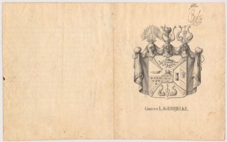 Approberad vapenritning för grevliga ätten Lagerbjelke, nr 115.