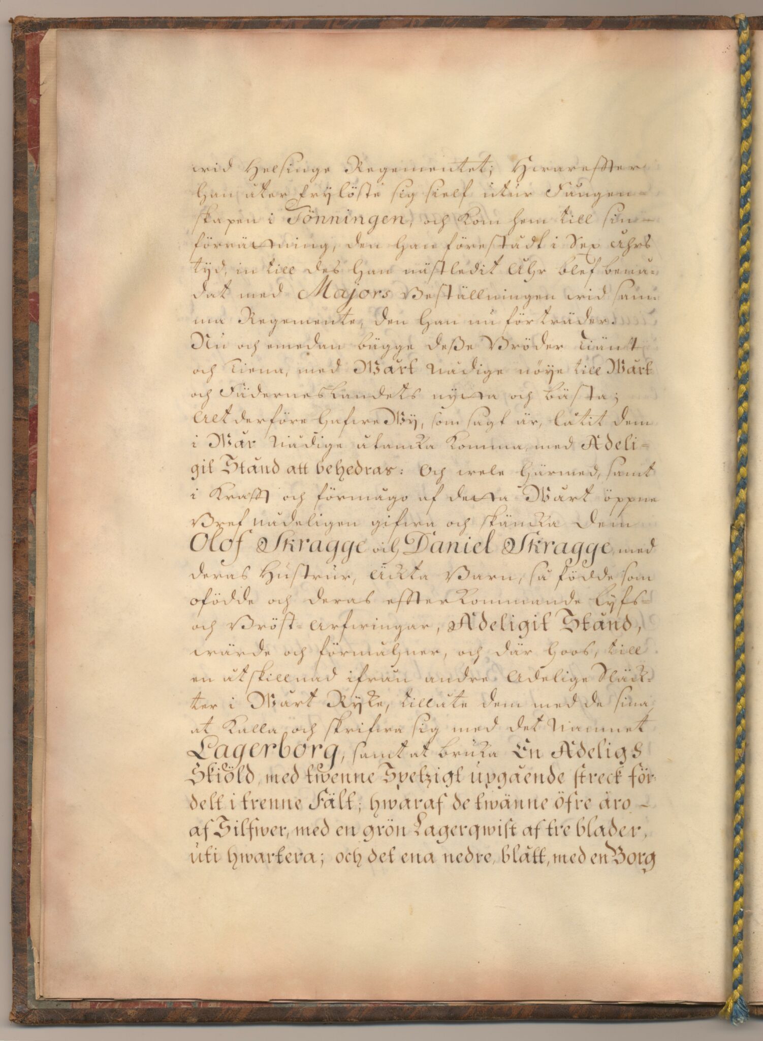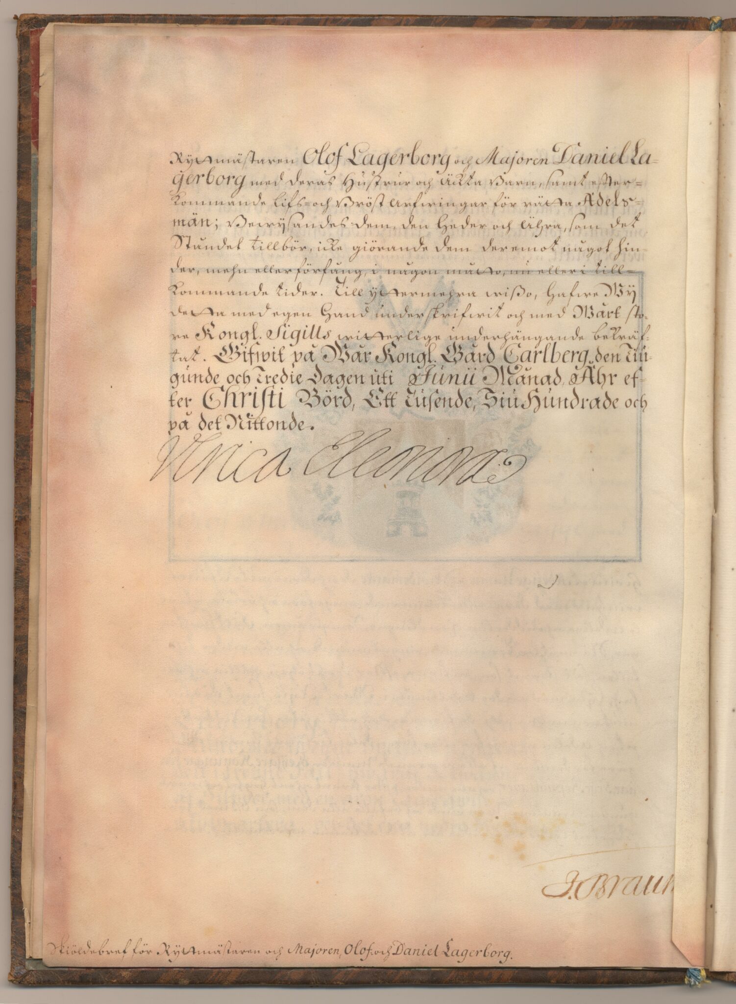 Sköldebrevet i original för utdöda adliga ätten Lagerborg, nr 1620.
