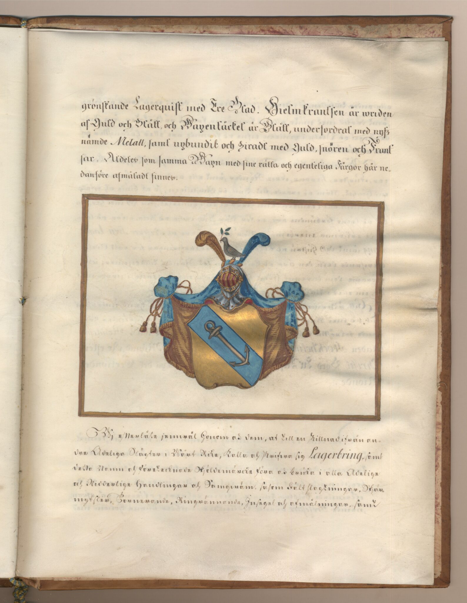 Sköldebrevet i original för utdöda adliga ätten Lagerbring, nr 2061 B.