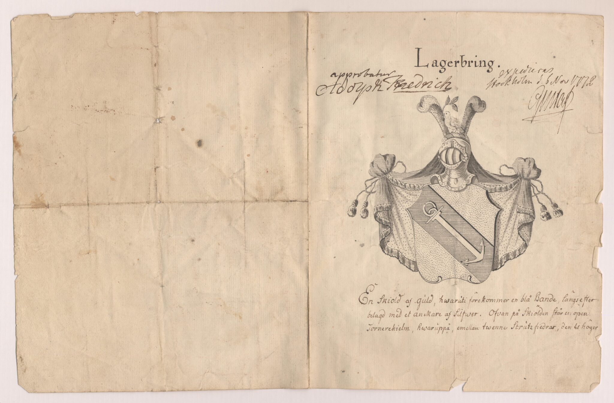 Approberad vapenritning för utdöda adliga ätten Lagerbring, nr 2061 B.