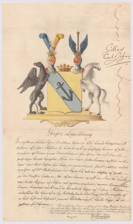 Approberad vapenritning för utdöda grevliga ätten Lagerbring, nr 134.