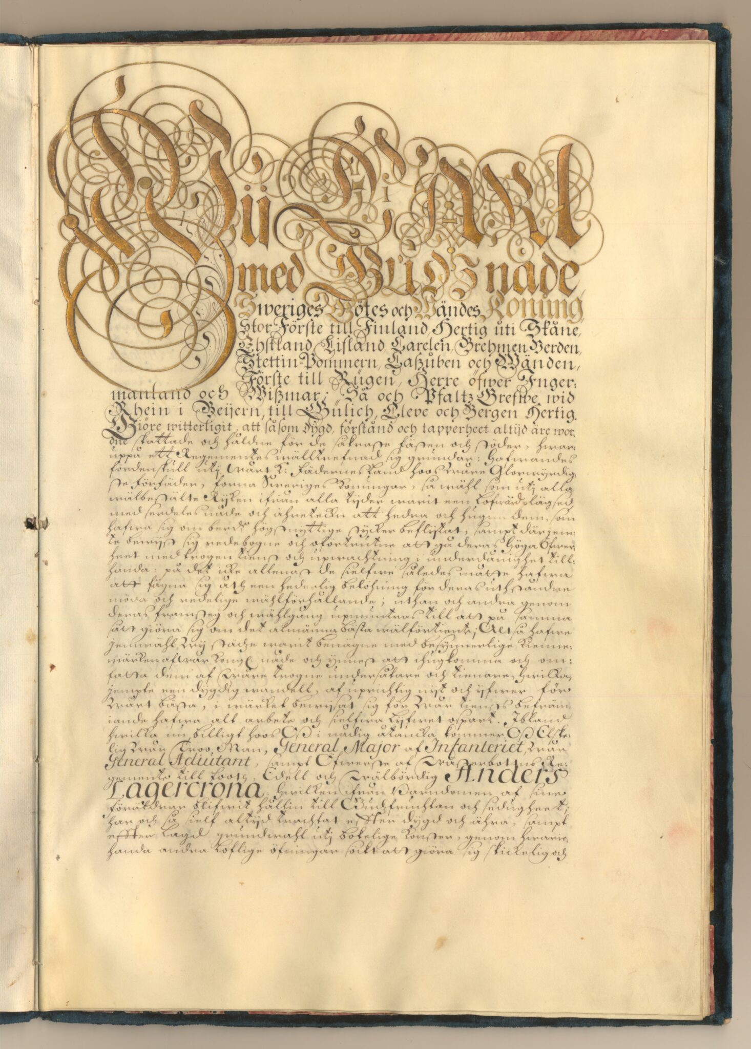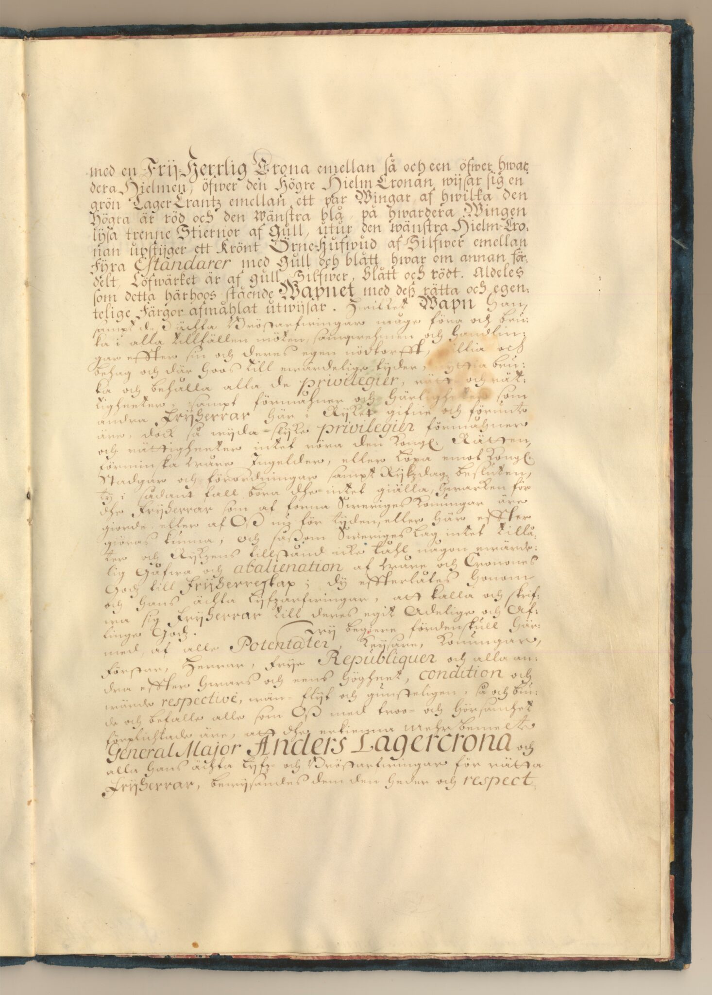 Friherrebrevet i original för utdöda friherrliga ätten Lagercrona, nr 113.