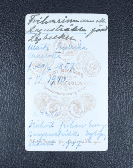 Lagerstråle, Märta Fredrika Charlotta, född friherrinna Lybecker, nr 119. Född 1857-07-20. Död 1940-01-01.