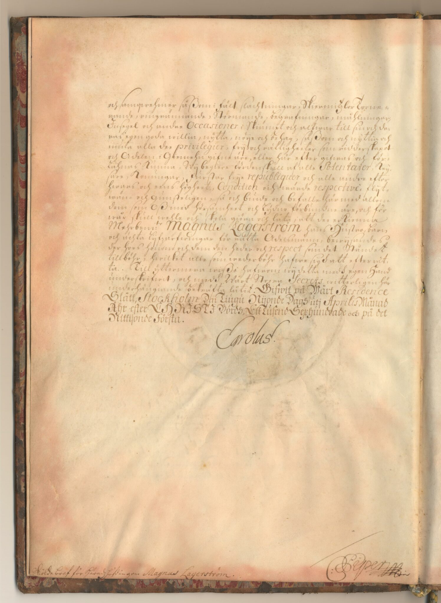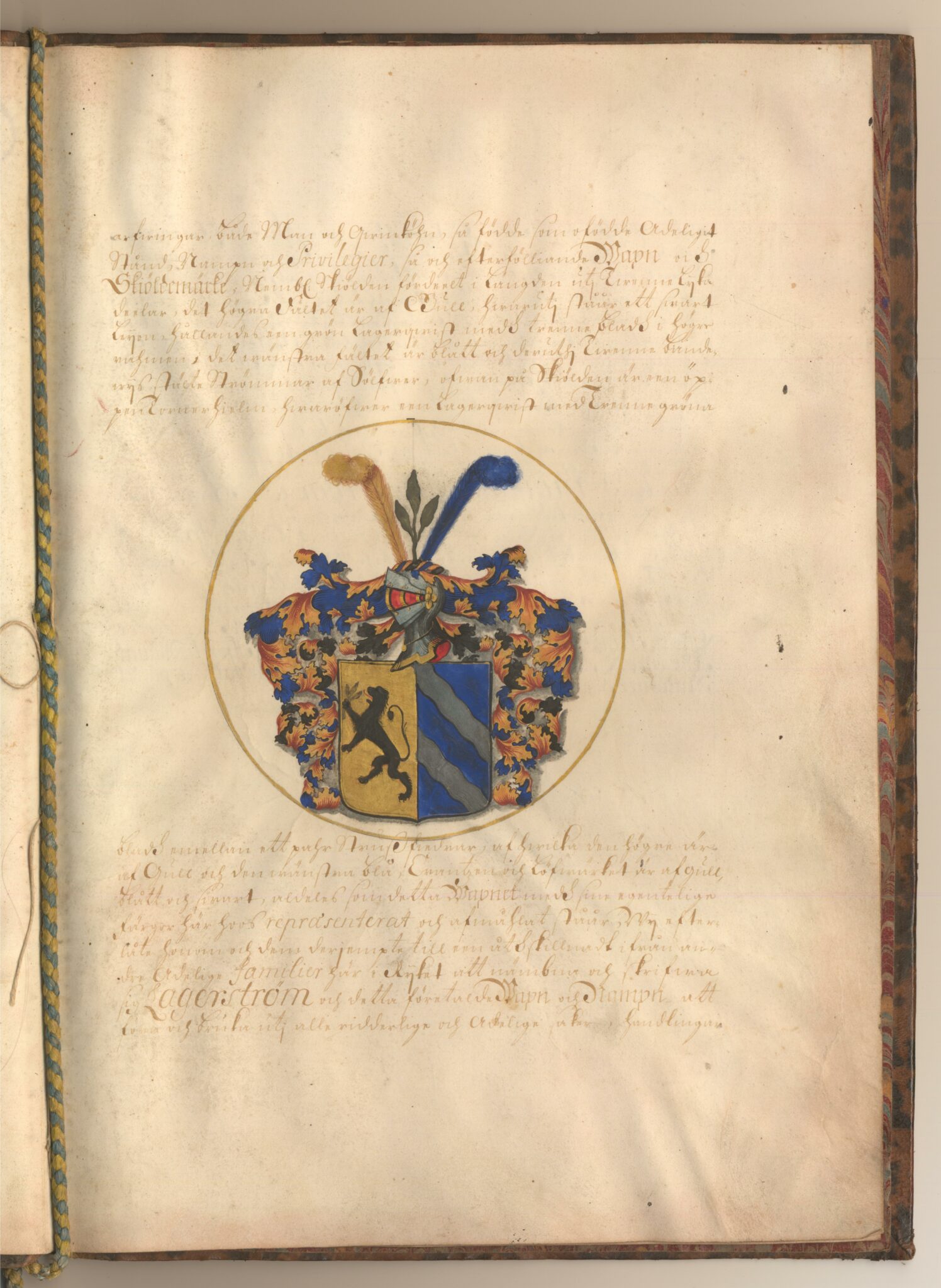 Sköldebrevet i original för utdöda adliga ätten Lagerström, nr 1228.